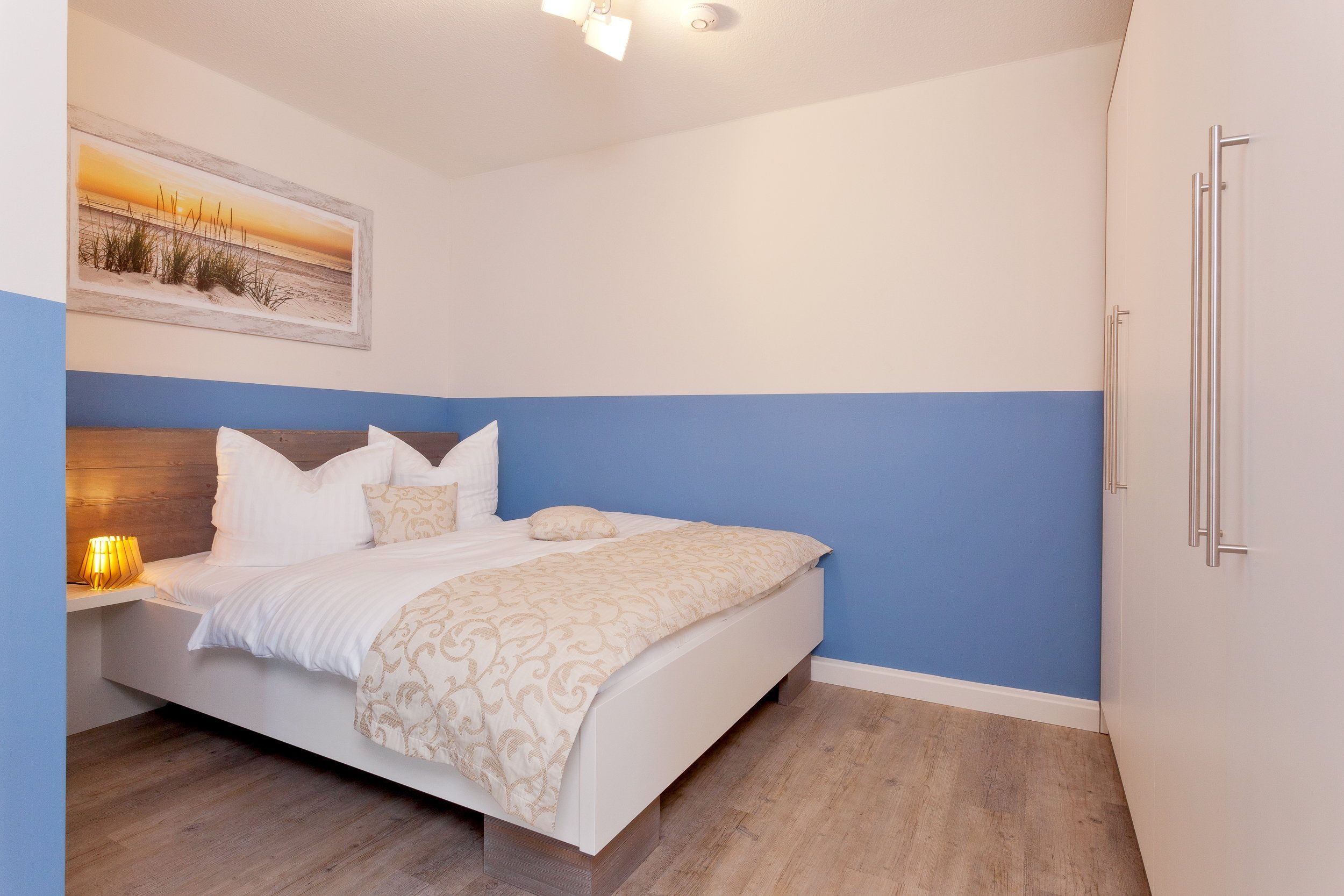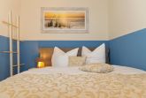 Durch eine kleine Wand vom Wohnbereich abgetrennt befindet sich das bequeme Doppelbett (160 x 200cm / zwei getrennte Matratzen) sowie ein geräumiger Kleiderschrank für Ihre Habseligkeiten. Damit Sie Ihre wohlverdiente Urlaubszeit bereits am Anreisetag in vollen Zügen genießen können, haben wir das Bett für Sie und das für Ihre lieben Mitreisenden bereits bezogen und ein Duschtuch sowie ein kleines Handtuch bereitgelegt.