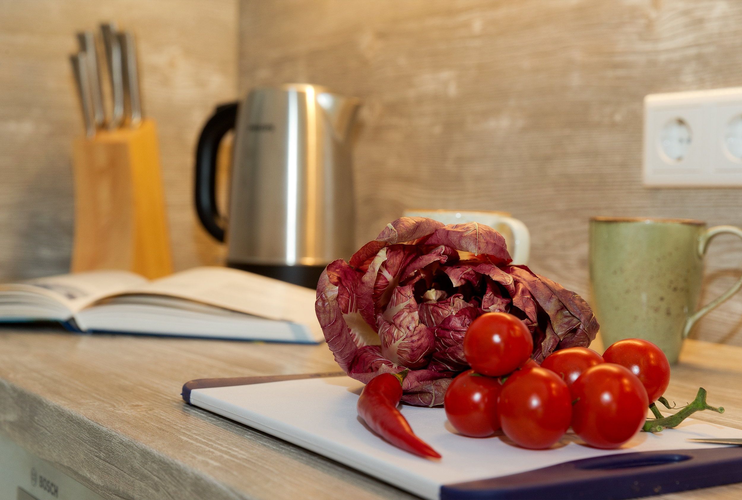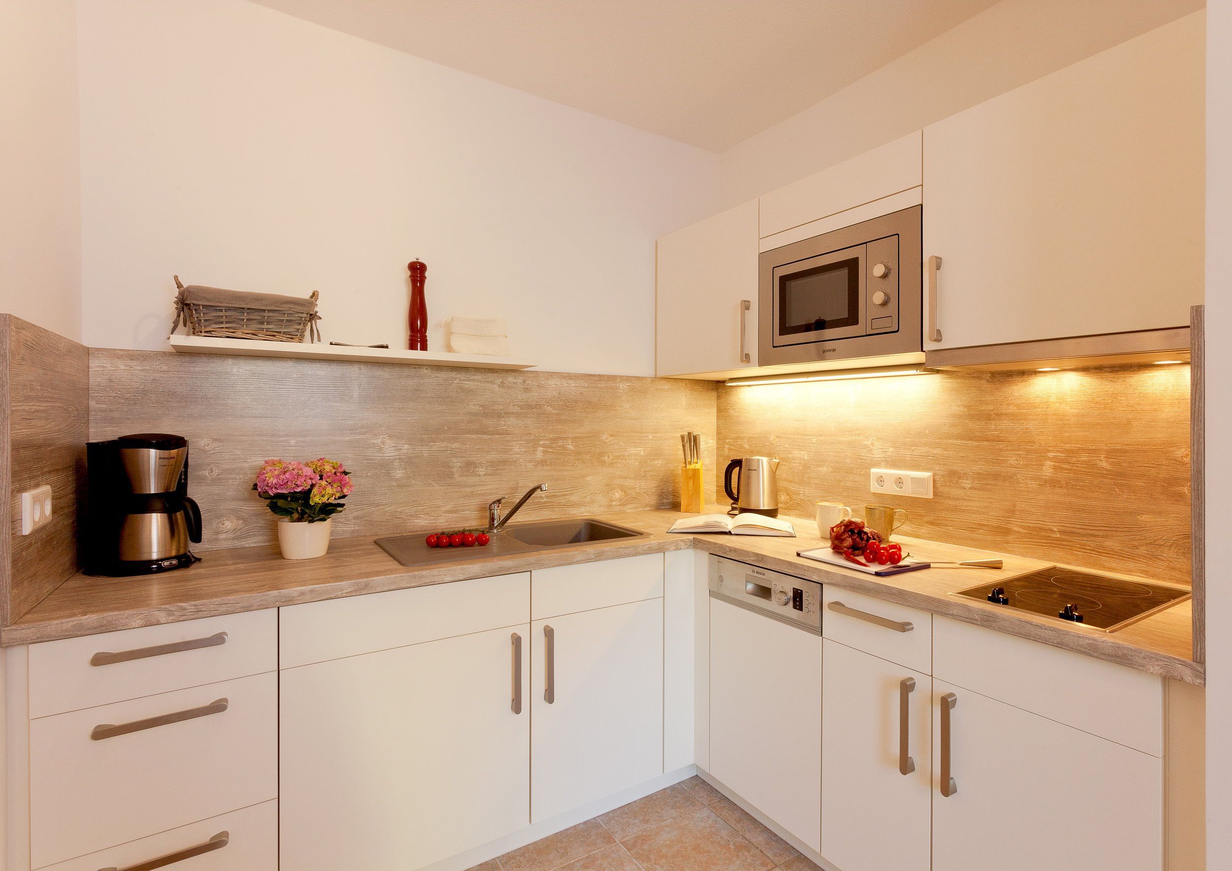 Lassen Sie einen erholsamen oder auch erlebnisreichen Urlaubstag bei einem Glas Wein auf der Terrasse ausklingen. Die separate komplett ausgestattete Einbauküche verfügt zudem über Kühlschrank mit Gefrierfach, Mikrowelle, Ceran-Kochfeld (2 Platten), Spülmaschine, Wasserkocher, Toaster, Kaffeemaschine (4er Filter). Das Badezimmer ist mit Dusche, WC und einem Haarfön ausgestattet. Am Haus steht Ihnen ein kostenfreier PKW Stellplatz zur Verfügung.