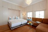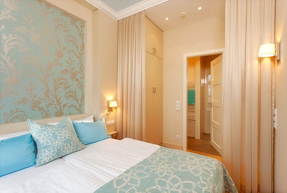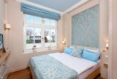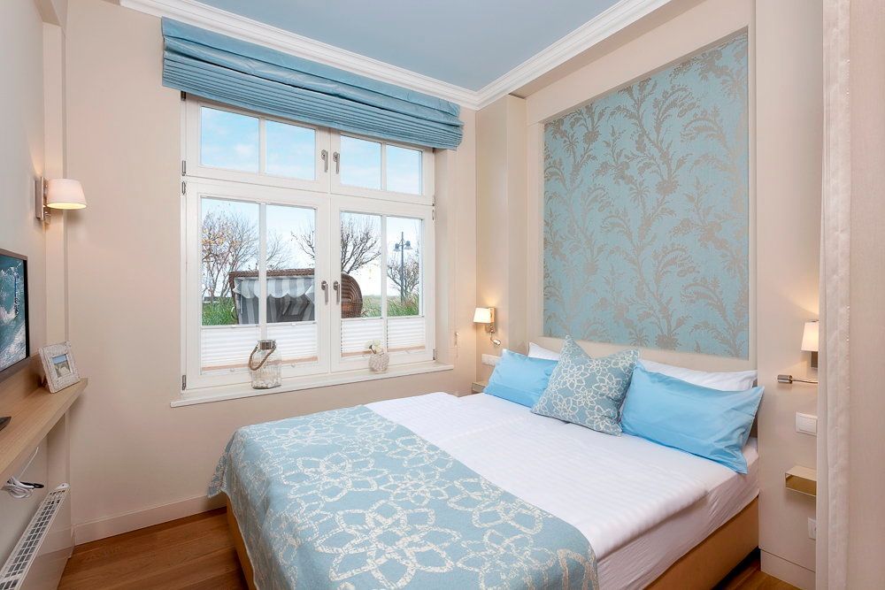 Das Schlafzimmer mit Meerblick lockt mit einem himmlischen Doppelbett mit Überlänge (160 x 210cm / zwei getrennte Matratzen) und einem Flachbildfernseher.