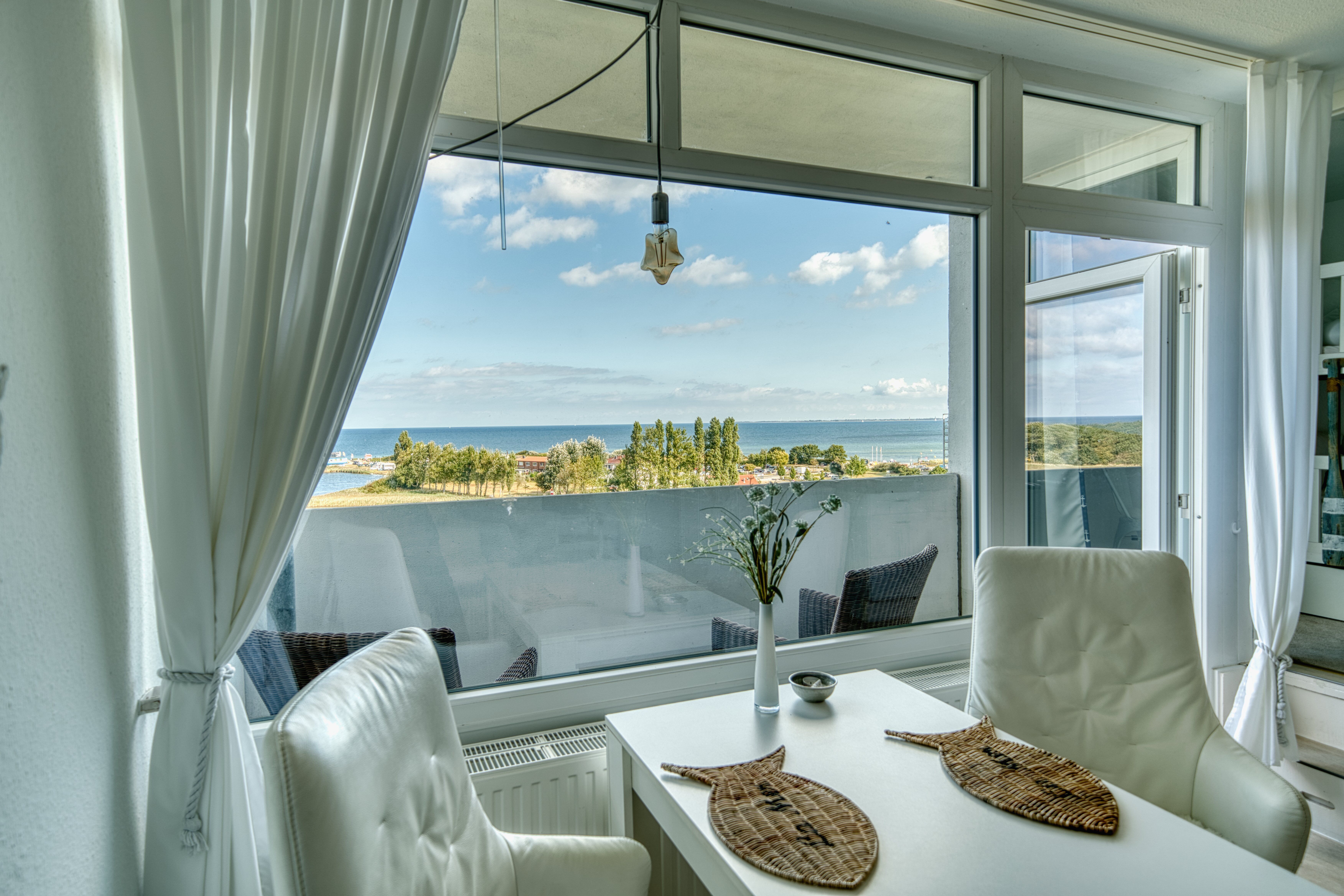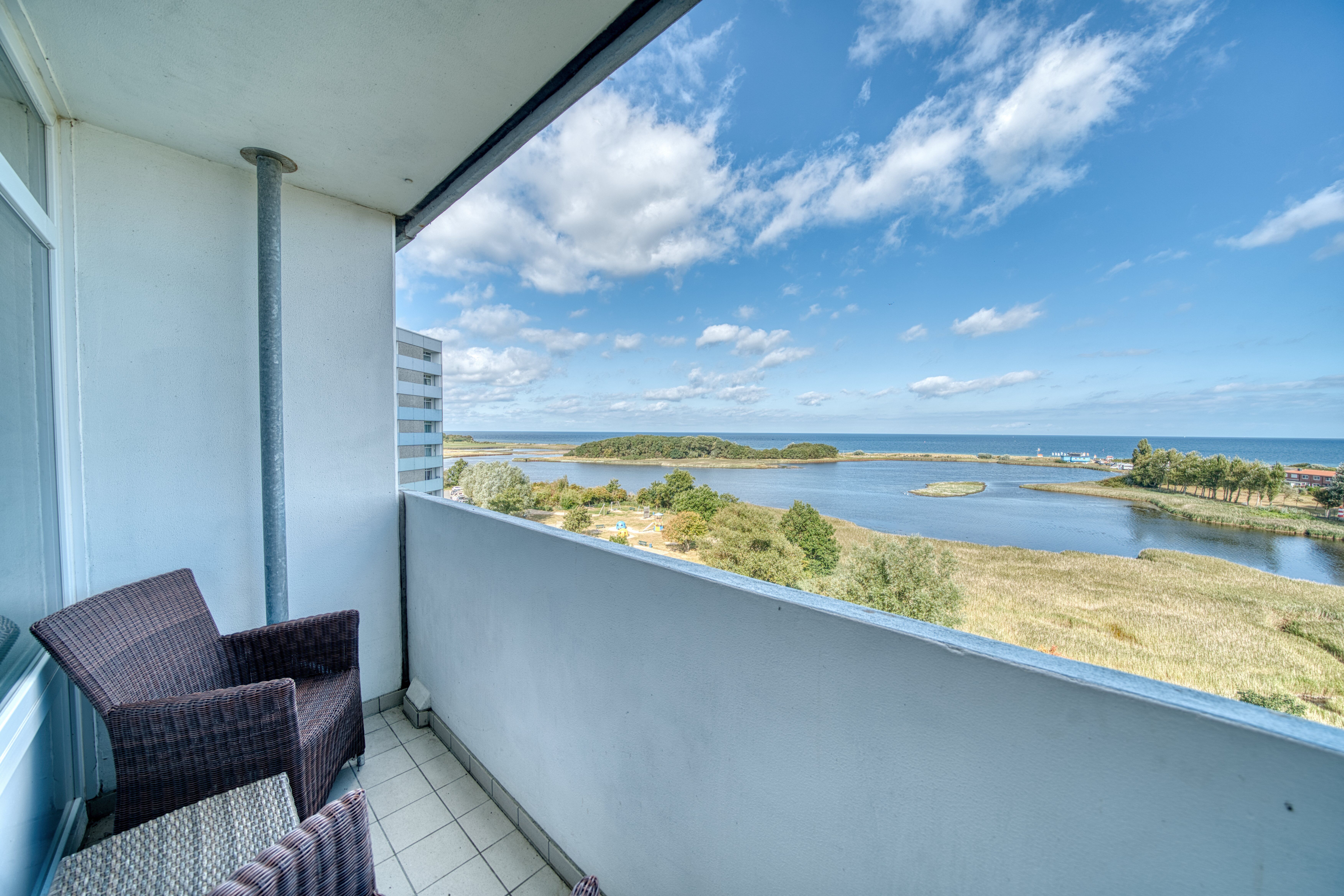 Die Wohnung liegt im Haus B Ferienpark, in der 7. Etage mit Balkon zur Nordseite, der einen herrlichen Blick auf die Ostsee bietet.