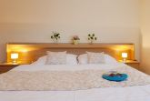 Damit Sie Ihre wohlverdiente Urlaubszeit bereits am Anreisetag in vollen Zügen genießen können haben wir das Bett für Sie und das für Ihre lieben Mitreisenden bereits bezogen und ein Duschtuch sowie ein kleines Handtuch bereitgelegt. Das Badezimmer mit Fenster verfügt über WC , Dusche und einem Haartrockner.