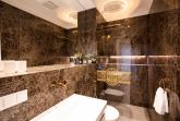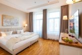 Damit Sie Ihre wohlverdiente Urlaubszeit bereits am Anreisetag in vollen Zügen genießen können, haben wir das Bett für Sie und das für Ihre lieben Mitreisenden bereits bezogen und ein Duschtuch sowie ein kleines Handtuch bereitgelegt. Das Badezimmer als Experiment, einmal mit einer auffallenderen und auch ungewöhnlicheren Farbgestaltung ein Wohlfühlgefühl de luxe zu erzeugen. Das Ergebnis kann sich sehen lassen: großformatige dunkle Natursteinfliesen, gepaart mit einer hellen Badkeramik sowie Armaturen und Accessoires in Messing präsentieren nun zusammen mit einer bodengleichen Dusche den Urlaubskomfort.