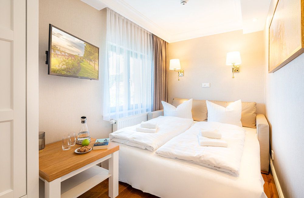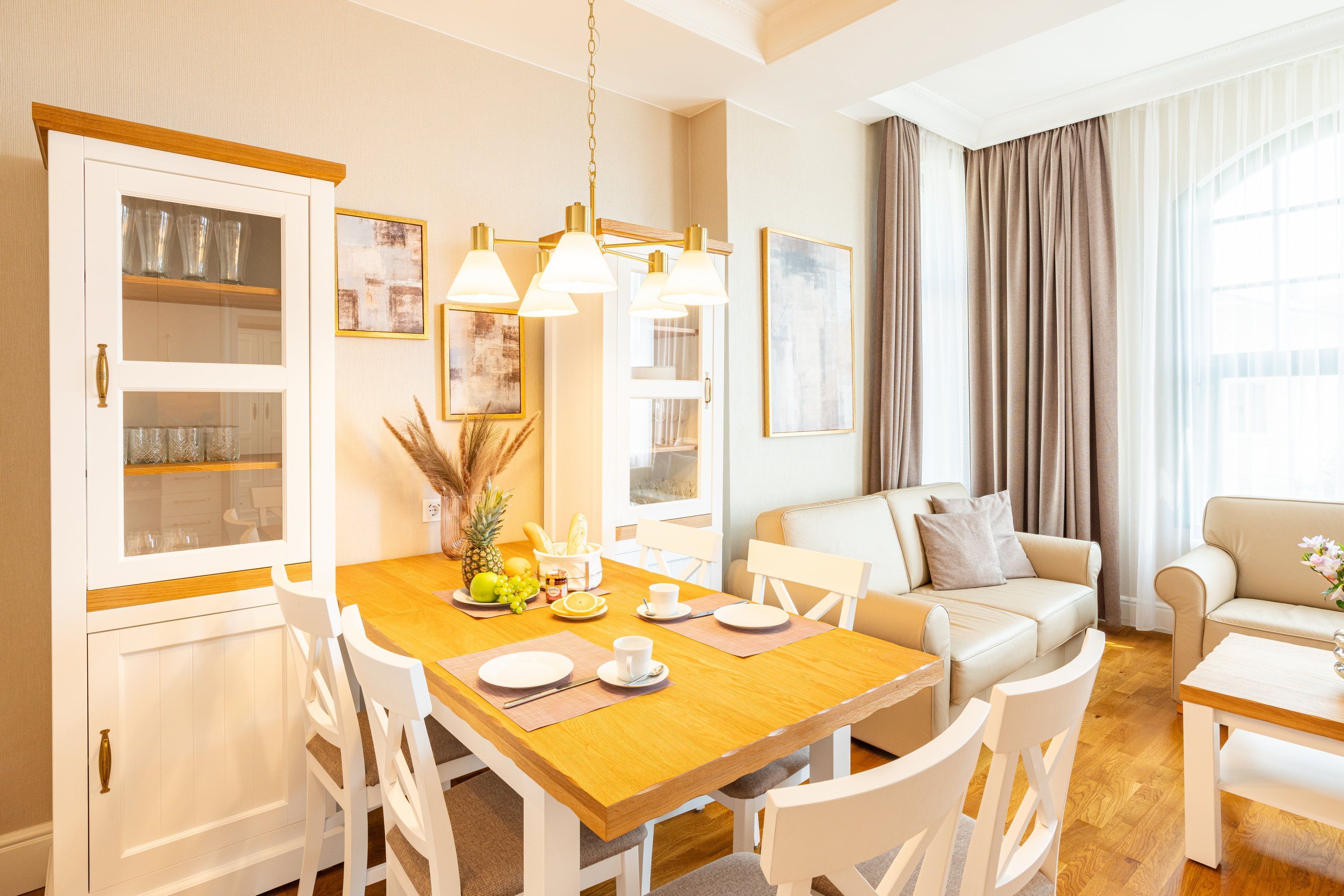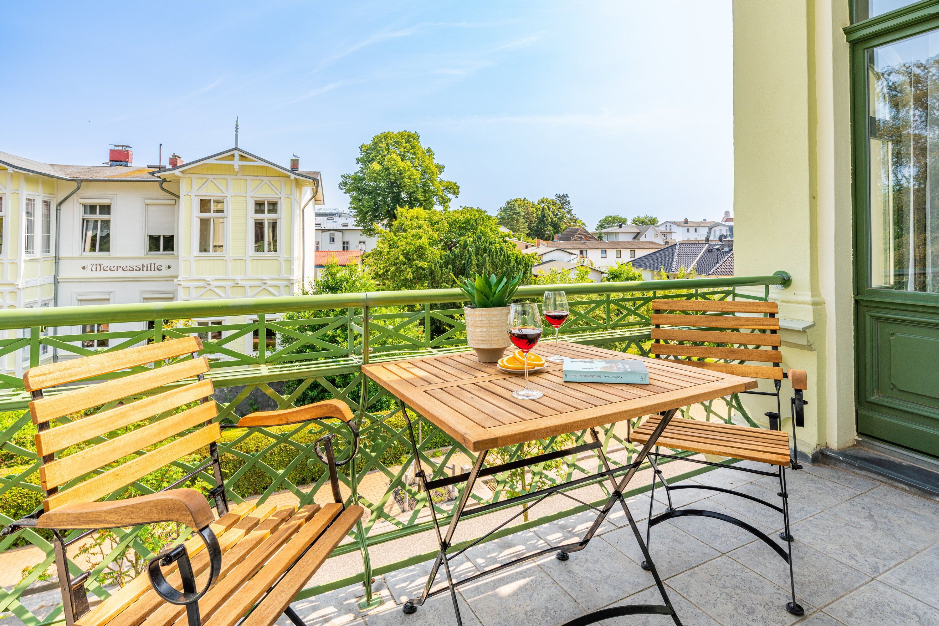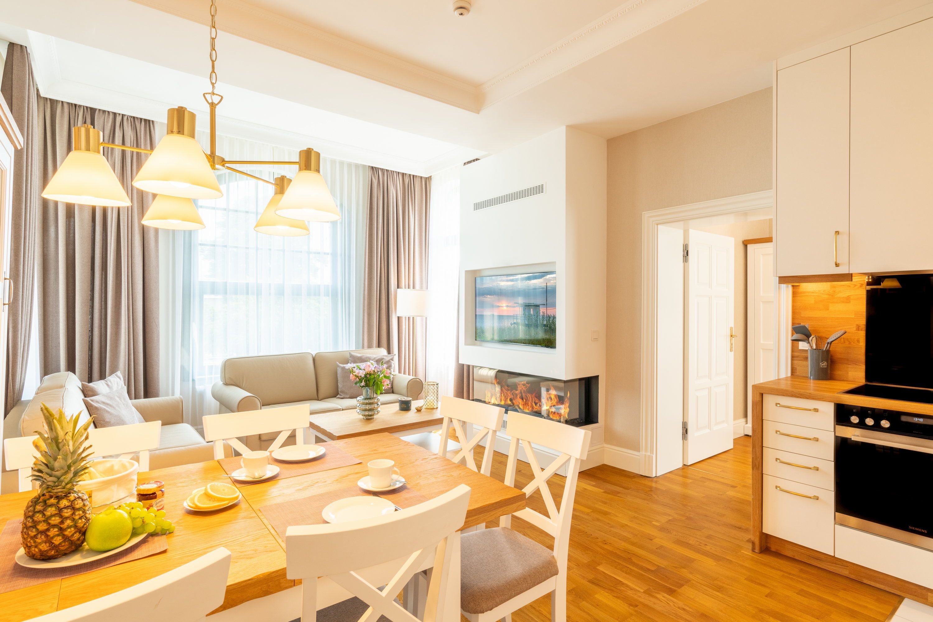 Urlaub im Herzen von Seebad Bansin in einer der schönsten Bädervillen des Ortes! Treten Sie ein und lassen Sie die Anziehungskraft und die Ausstrahlung dieser historischen und zugleich liebevoll sanierten Villa auf sich wirken. Wir präsentieren Ihnen unser neuestes innenarchitektonisches Meisterwerk alles stilecht mit unendlich viel Liebe zum Detail aufeinander abgestimmt. Die ideale Raumaufteilung für bis zu sechs Personen verspricht Urlaubsgenuss pur. Ein großzügiger Wohnbereich mit einem exklusiven Gaskamin erwartet Sie bereits, sodass Sie eine angenehme Wohlfühlatmosphäre das gesamte Jahr über genießen. Eine bequeme Couchgarnitur und ein Flat TV runden den Komfort perfekt ab und laden zum Entspannen und Füße hochlegen ein. Das helle Drei-Zimmer-Appartement hat eine Größe von 65 Quadratmetern und liegt im 1. Obergschoss der Villa Waldschloss.