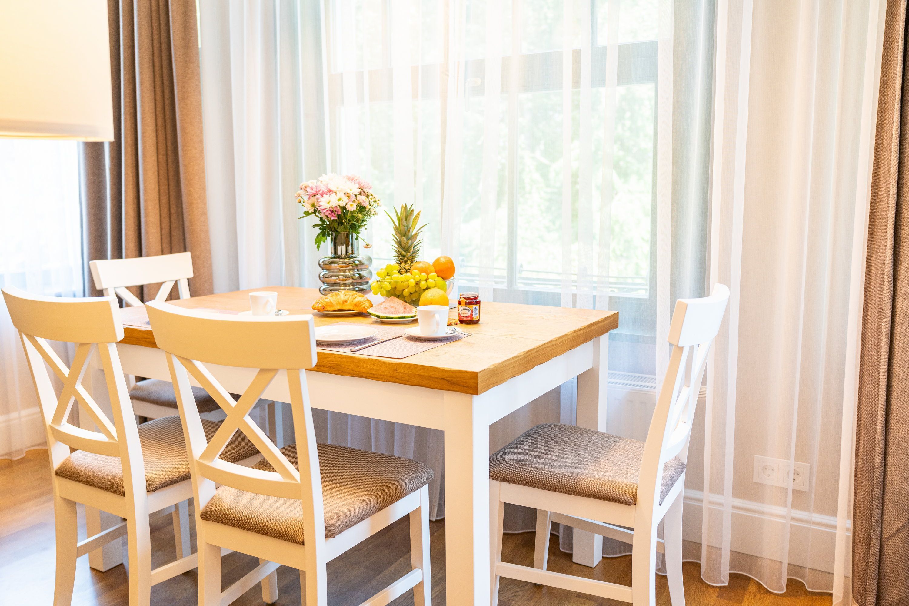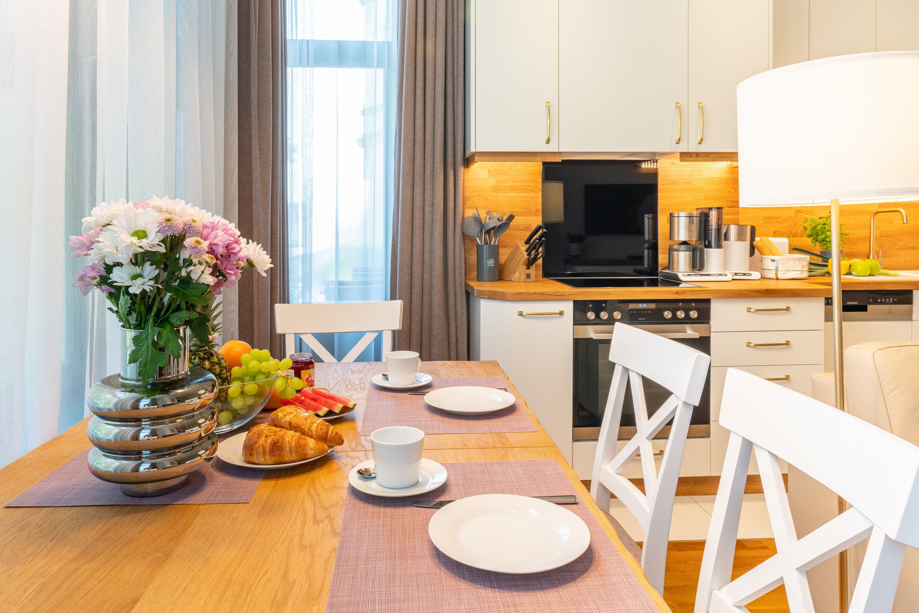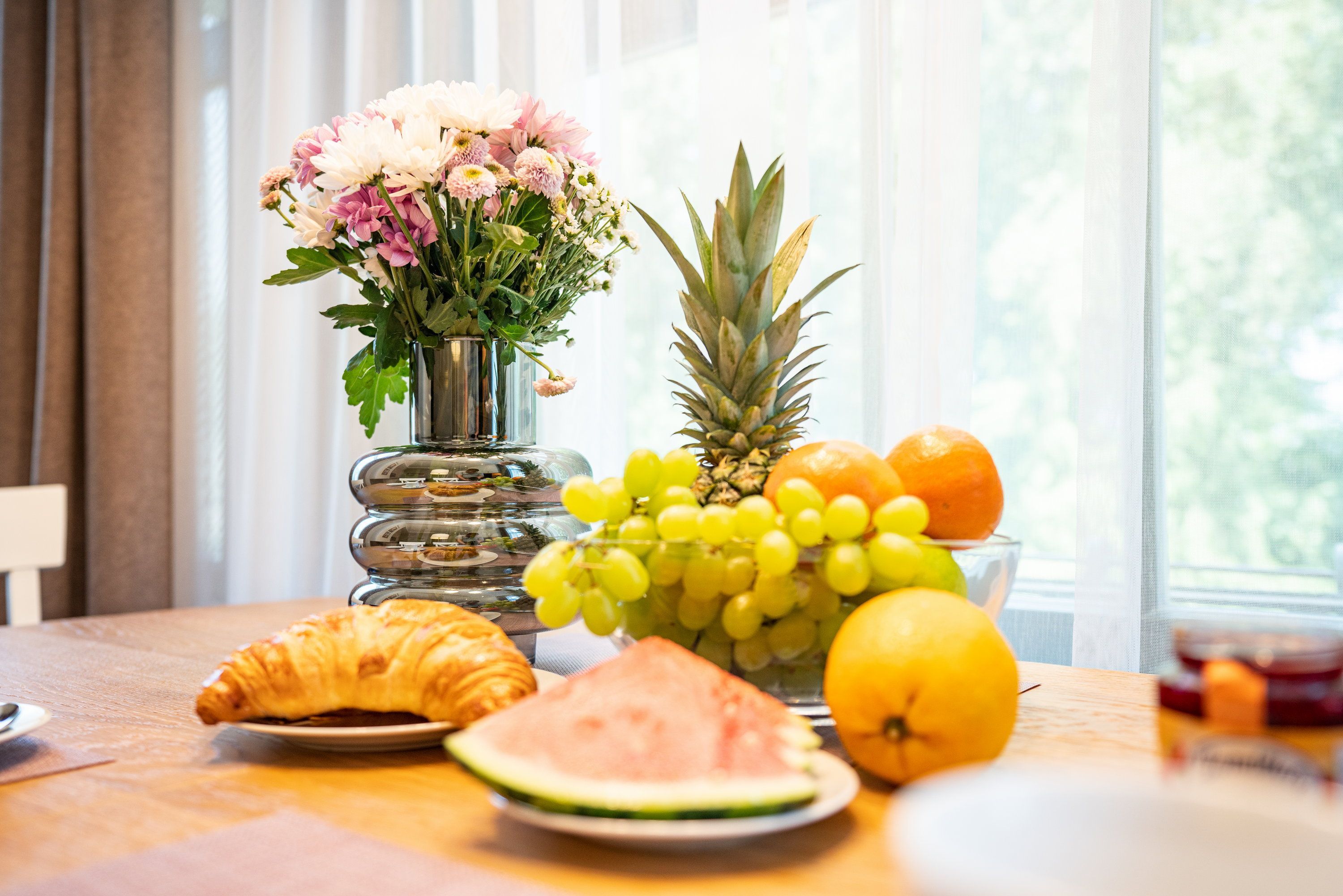 Ein großzügiger Wohnbereich mit einem exklusiven Gaskamin erwartet Sie bereits, sodass Sie eine angenehme Wohlfühlatmosphäre das gesamte Jahr über genießen. Eine bequeme Couchgarnitur und ein Flat-TV runden den Komfort perfekt ab und laden zum Entspannen und Füße hochlegen ein. Das helle Zwei-Zimmer-Appartement hat eine Größe von 46 Quadratmetern und liegt im 1. Obergschoss der Villa Waldschloss. Die vollausgestattete Küche, welche speziell von einem einheimischen Tischler angefertigt wurde, ergänzt die Annehmlichkeiten dieses neuen Appartements mit allen Raffinessen: Backofen, Mikrowelle, Kühlschrank mit Gefrierfach, Toaster, Wasserkocher, Kaffeemaschine sowie einem Essplatz für 4 Personen mit Blick in den gegenüberliegenden Park.