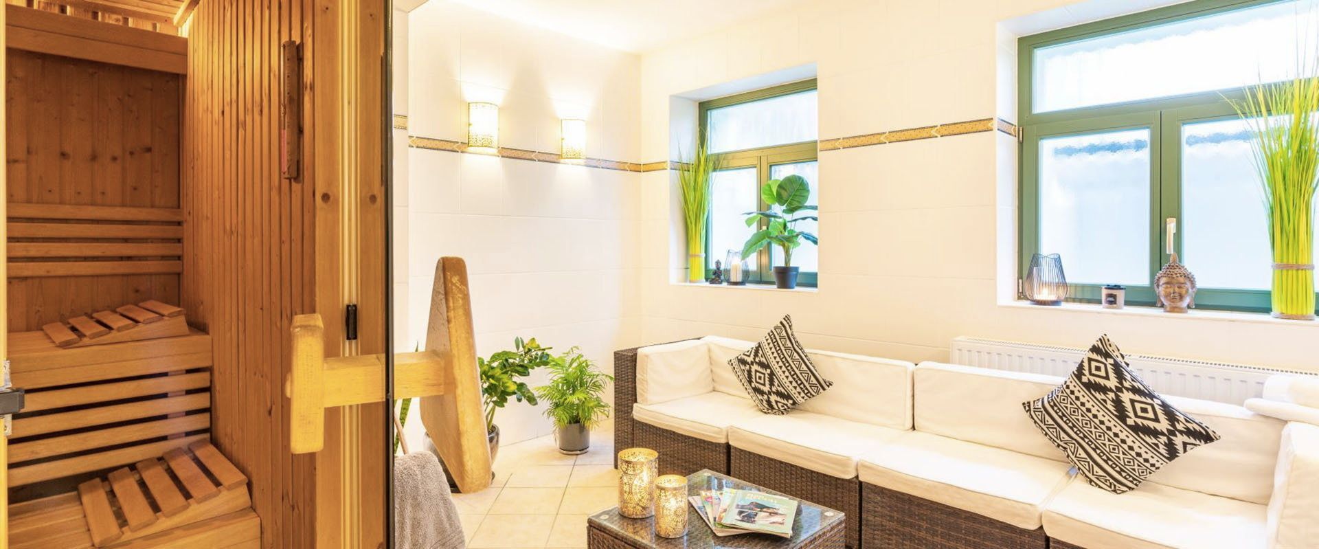 Saunaliebhaber kommen ebenfalls auf ihre Kosten: Die Sauna im Haus ist nur wenige Schritte vom Appartement entfernt und bequem im Bademantel erreichbar ideal nach einem aktiven Tag am Strand oder im Wald.