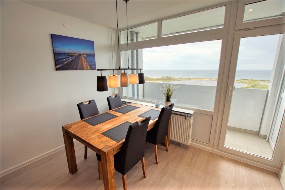 Hoch oben im 11. Obergeschoss des Hauses C erwartet Sie diese durchdacht geschnittene Ferienwohnung für bis zu 5 Personen mit modernem Design, großzügigem Platzangebot und einem einmaligen Blick auf die Ostsee, den Sie vom eigenen Balkon aus genießen können. Ideal für Familien oder kleine Reisegruppen, die Wert auf Stil, Raum und Ausblick legen.