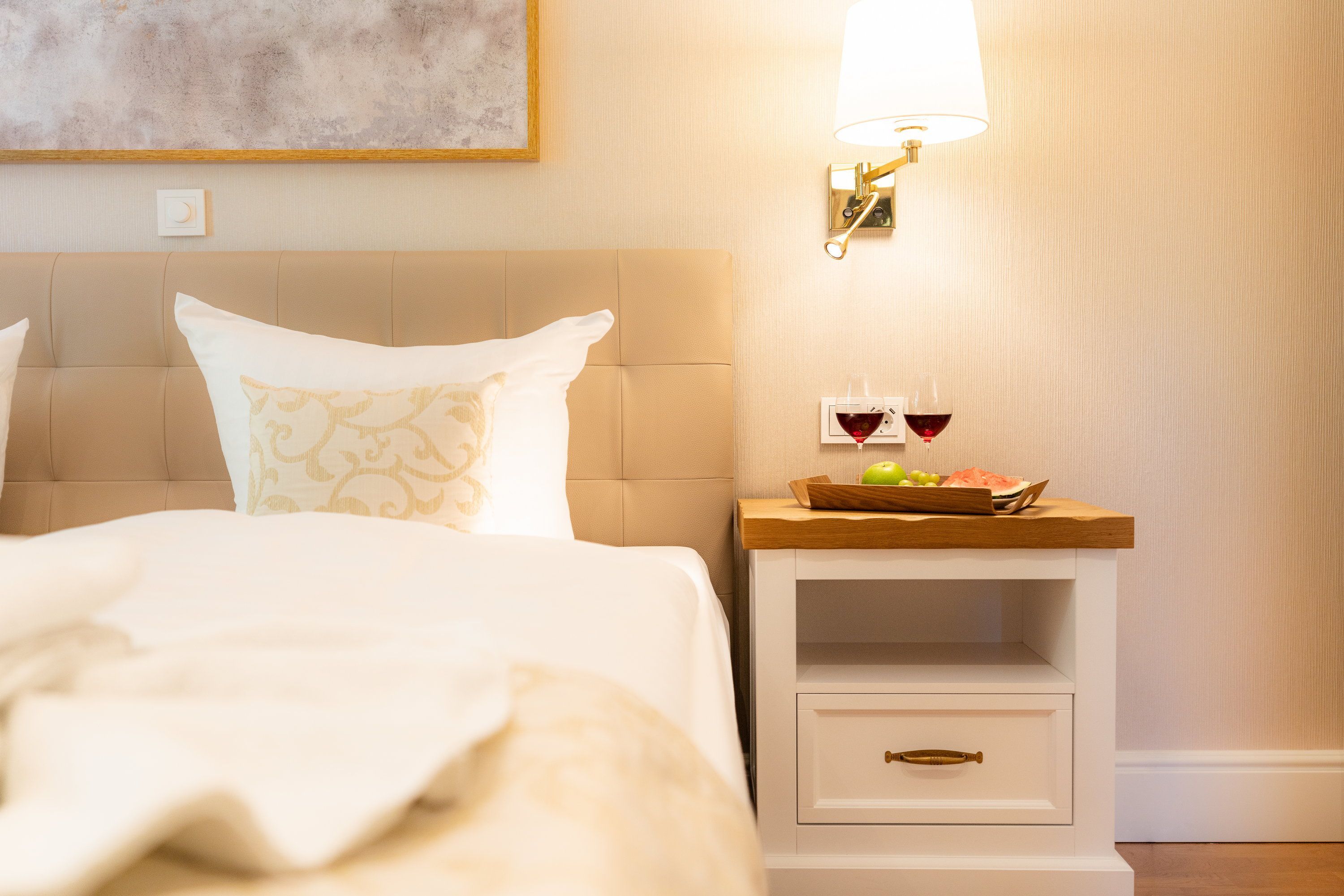 Im Schlafzimmer ist die Aufbettung mit einem Kleinkind bis 3 Jahre in einem Babyreisebett möglich. Das Babyreisebett können Sie gegen Gebühr hinzubuchen.