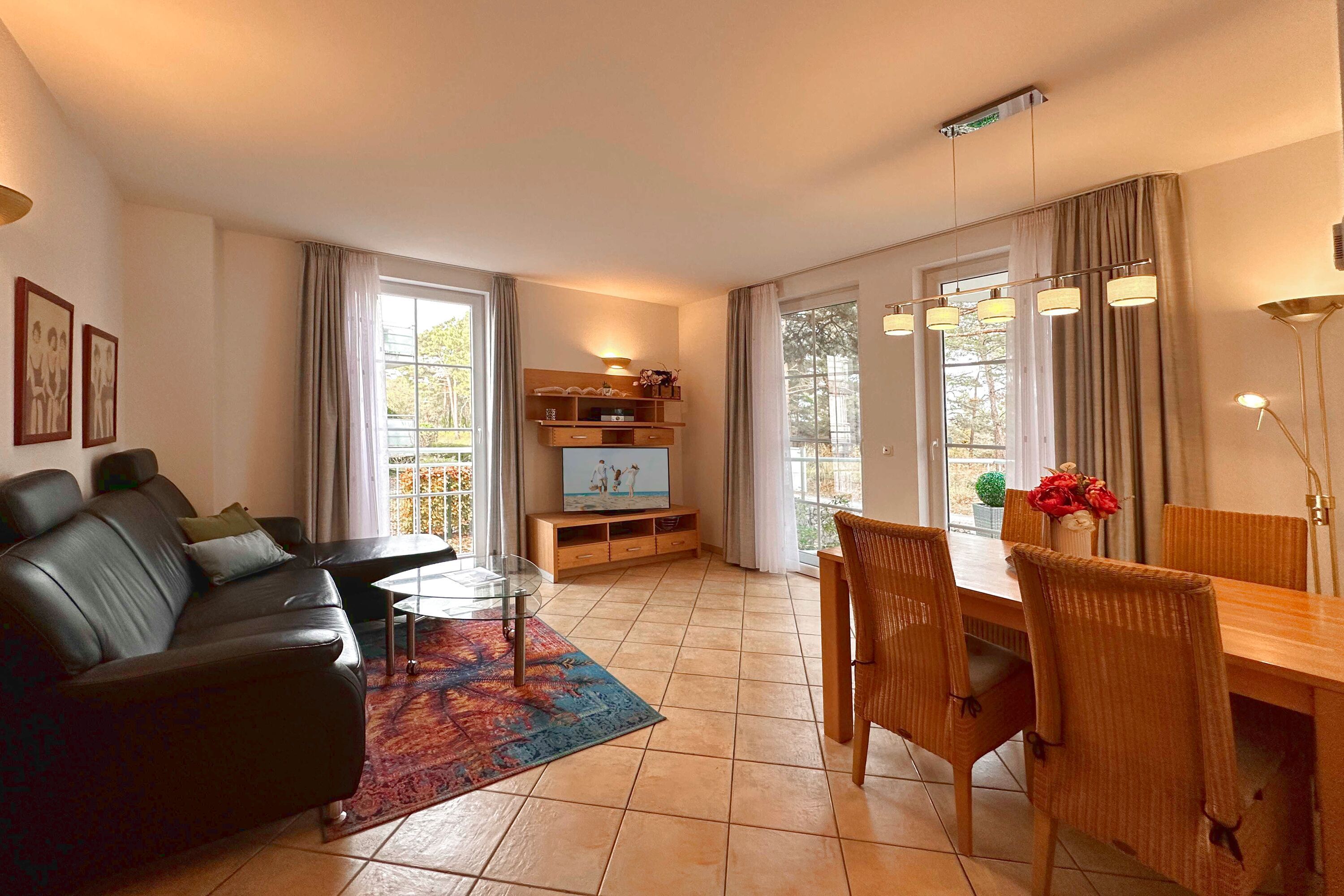 Das 3-Zimmer-Appartement zur Meerseite befindet sich in Hochparterre der Residenz und bietet mit seinen 67 Quadratmetern viel Platz für die ganze Familie mit bis zu 4 Personen.