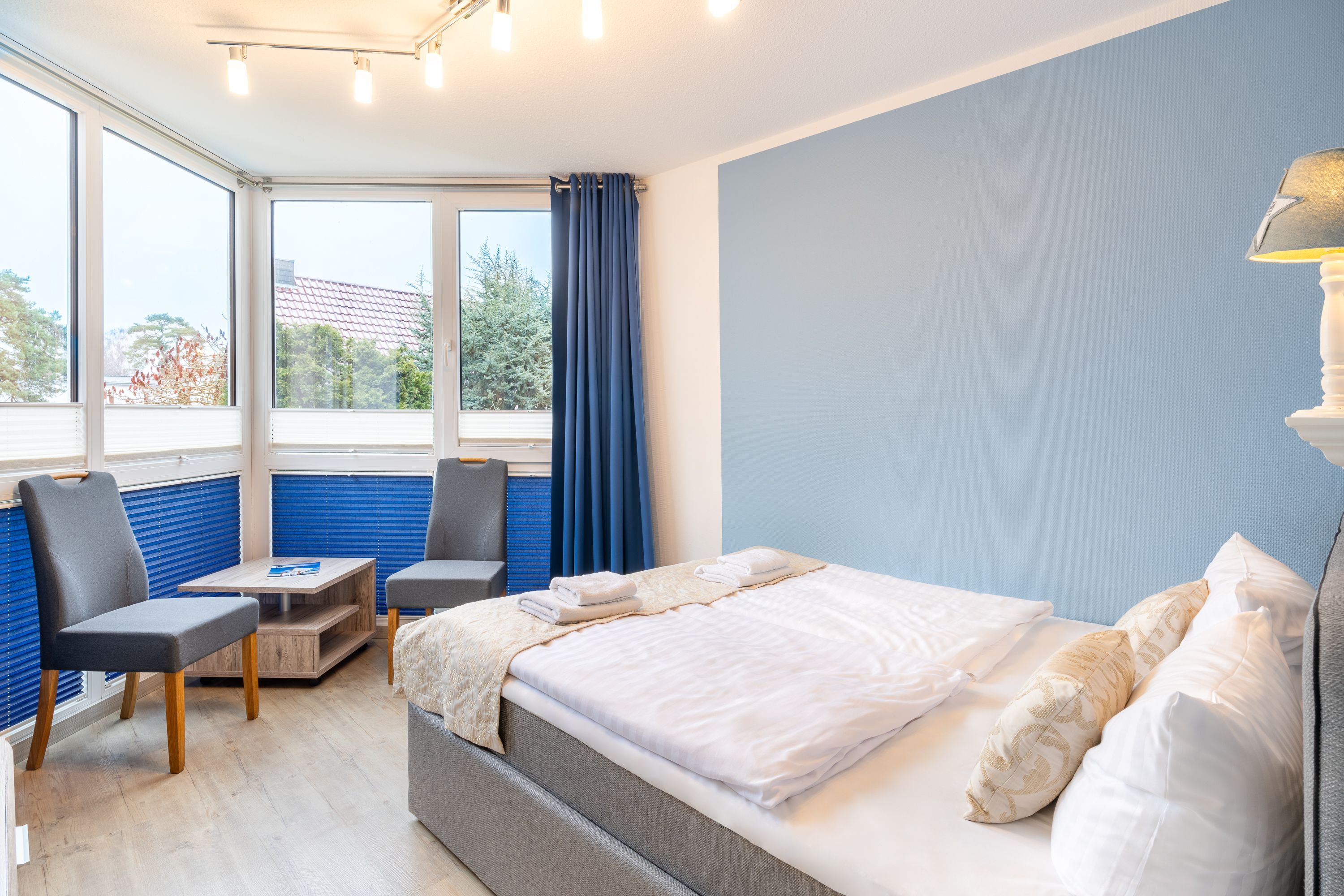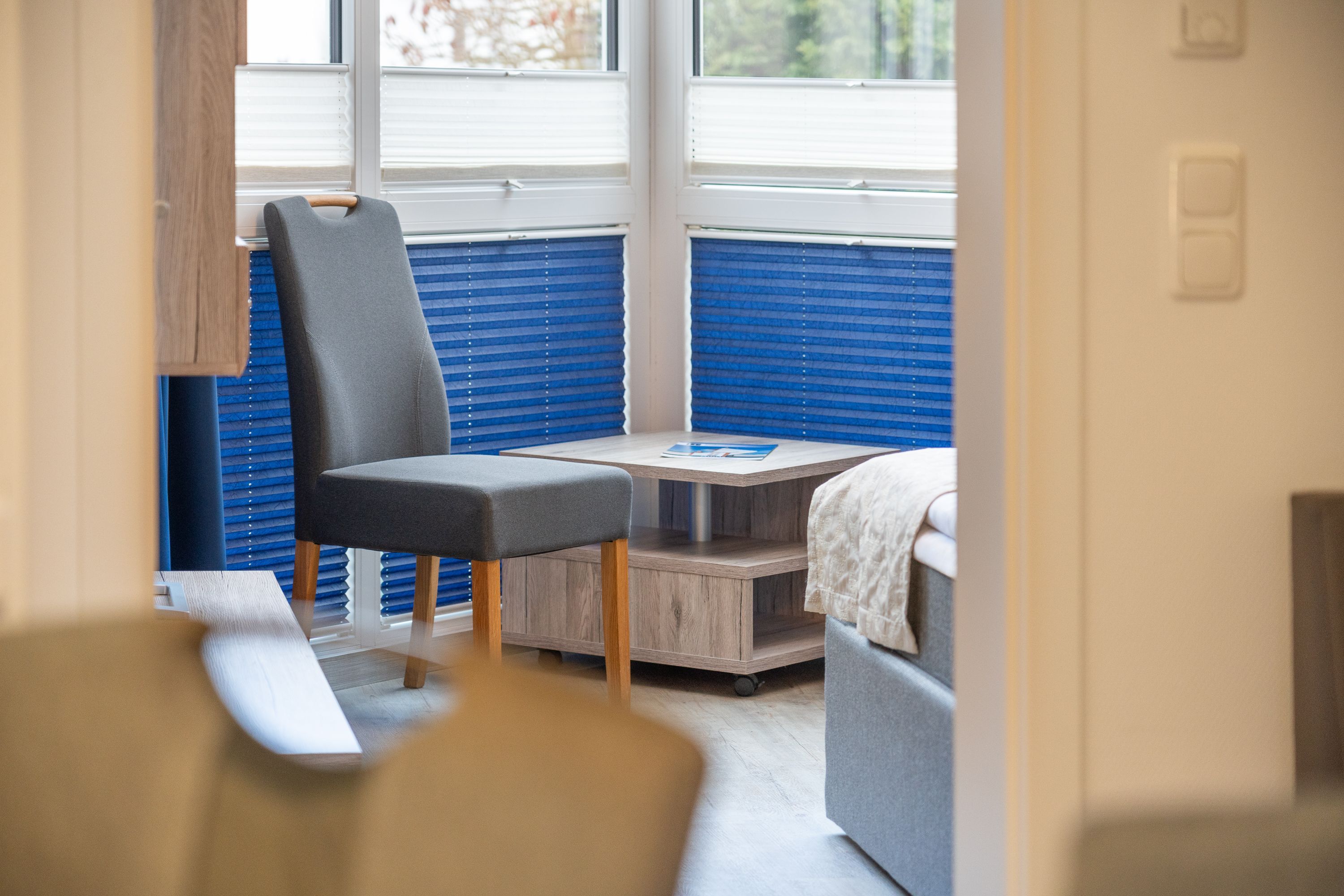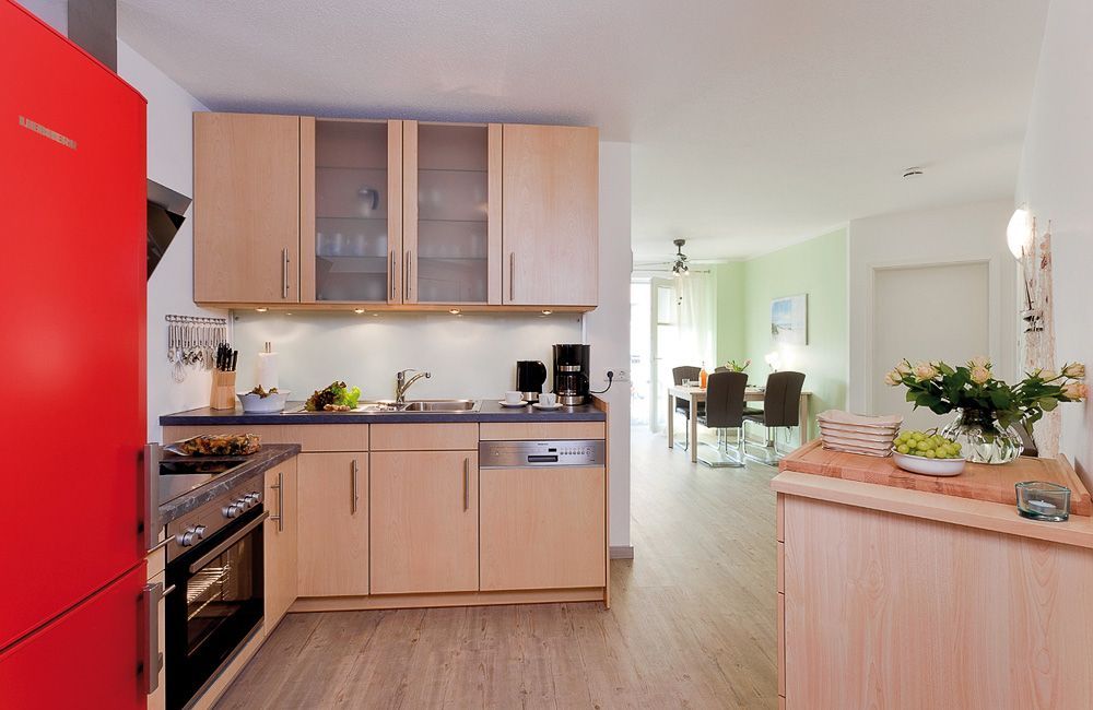 Das großzügige 3-Raum-Appartement bietet auf 67m² Raum für einen erholsamen Urlaub mit bis zu vier Personen. Der freundlich gestaltete Wohnbereich verleiht mit einer bequemen Couch und dem dazugehörigen Sessel genau die Gemütlichkeit, auf die man im Urlaub keinesfalls verzichten möchte. Die offene Küche lässt Dank Kühlschrank mit Gefrierfach, Ceran-Kochfeld, Backofen, Mikrowelle, Geschirrspülmaschine, Kaffeemaschine, Toaster und Wasserkocher u. v. m. keine Wünsche offen. Der Essplatz ist perfekt in den Wohnbereich integriert und bietet Gelegenheit für ein gemeinsames Menü. Auf dem angrenzenden Süd-West-Balkon können Sie einen erlebnisreichen Urlaubstag bei einem Glas Wein oder einem Spieleabend ausklingen lassen.