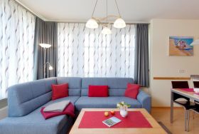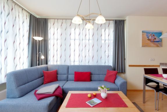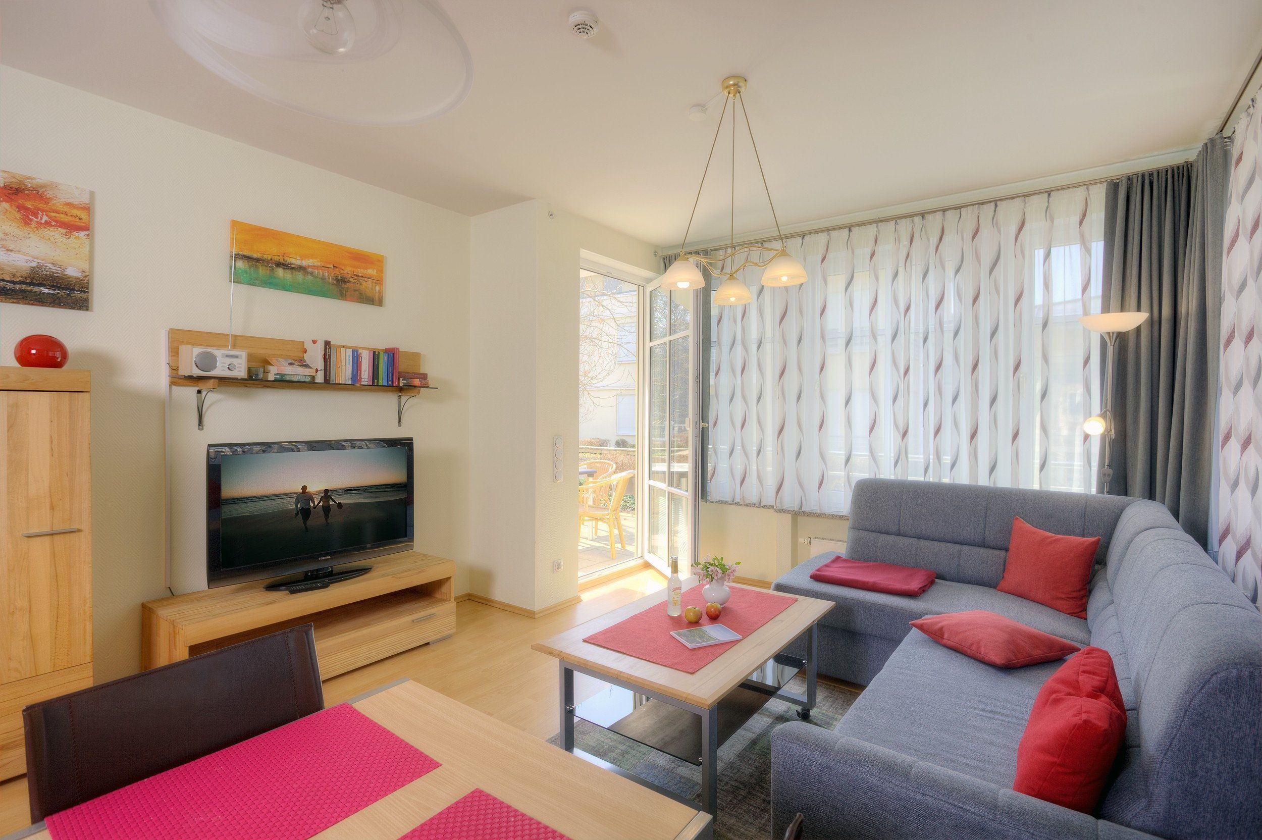 Damit Sie Ihre wohlverdiente Urlaubszeit bereits am Anreisetag in vollen Zügen genießen können, haben wir das Bett für Sie und das für Ihre lieben Mitreisenden bereits bezogen und ein Duschtuch sowie ein kleines Handtuch bereitgelegt. Vom Schlafzimmer haben Sie einen zweiten Zugang zu der Terrasse. Die Schlafcouch im Wohnbereich lässt sich im Handumdrehen für die dritte und vierte Person in ein weiteres Schlafgemach umwandeln. Das elegante Badezimmer mit Badewanne, WC, Haartrockner und einem Handtuchheizkörper überzeugt durch seine hochwertige Ausstattung. Für kuschelig warme Füße sorgt die Fußbodenheizung. Wohn- und Schlafraum verfügen über elektrische Jalousien.