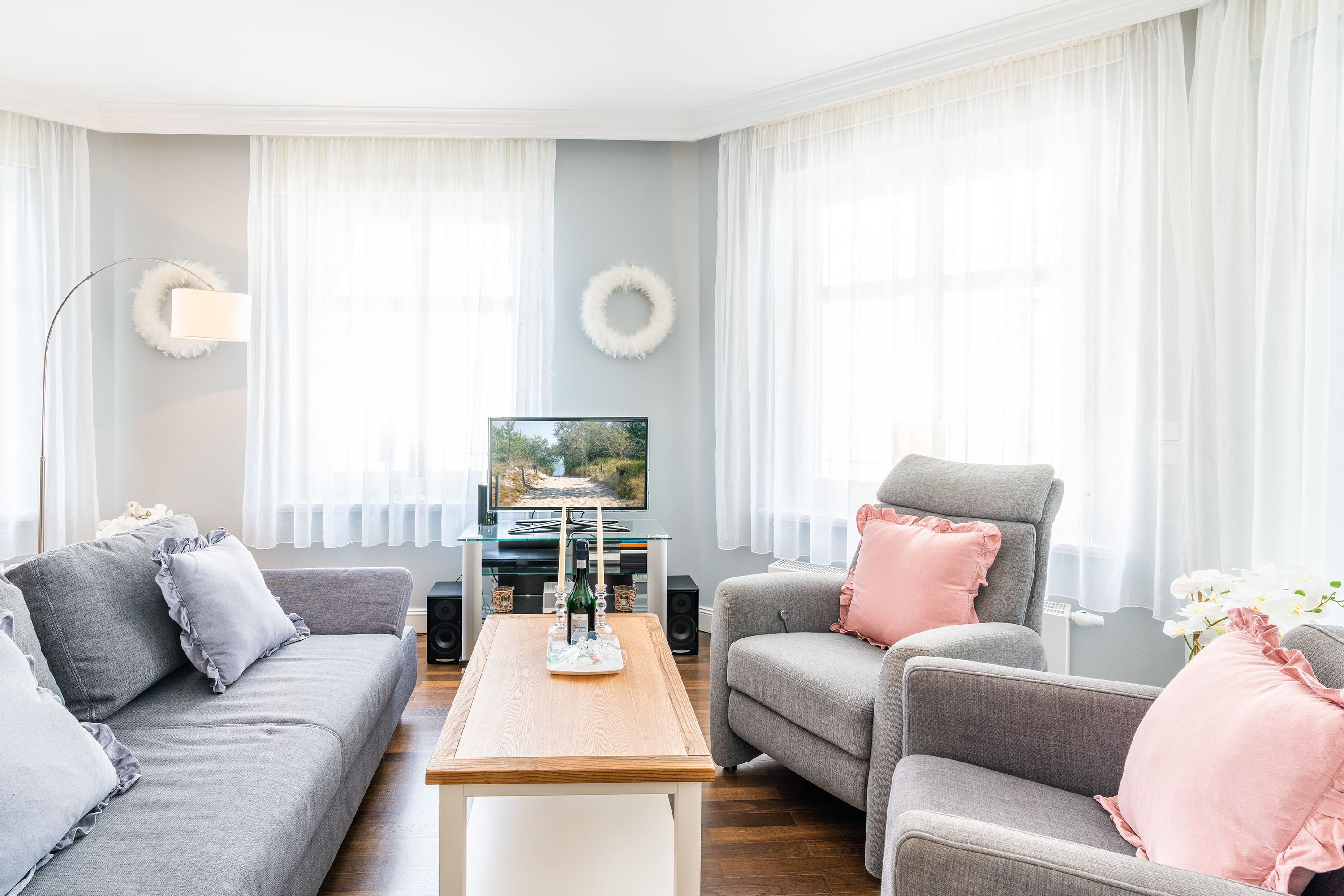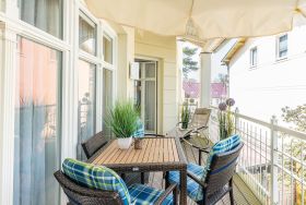 Das 2-Zimmer-Appartement zur Nordostseite befindet sich im 1. Obergeschoss der Villa und bietet mit seinen 50 Quadratmetern viel Platz für Familien mit bis zu 4 Personen.