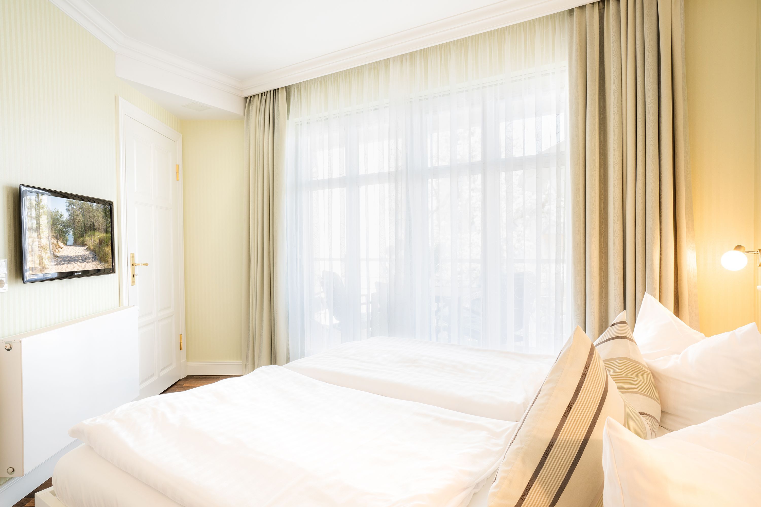 Das Appartement verfügt über ein Schlafzimmer mit Doppelbett (180 x 200cm / zwei getrennte Matratzen) und Flat-TV sowie über einen weiteren Zugang zum Balkon.