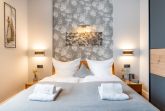 Das Appartement ist wegen seiner jeweils mit Doppelbett ausgestatteten zwei Schlafzimmer das ideale Quartier für Familien mit bis zu zwei Kindern sowie zwei Paare gleichermaßen. Auf Komfort muss im Appartement Nr. 6 niemand verzichten: So garantiert dieses mit seinen hochwertigen Boxspringbetten (je 160 x 200cm / zwei getrennte Matratzen) vier Urlaubsgästen einen komfortablen Schlafgenuss und bietet mit moderner Technik, wie WLAN-Anschluss und Flat TV, im Wohnbereich sowie in einem der Schlafzimmer täglich eine gelungene Abwechslung.