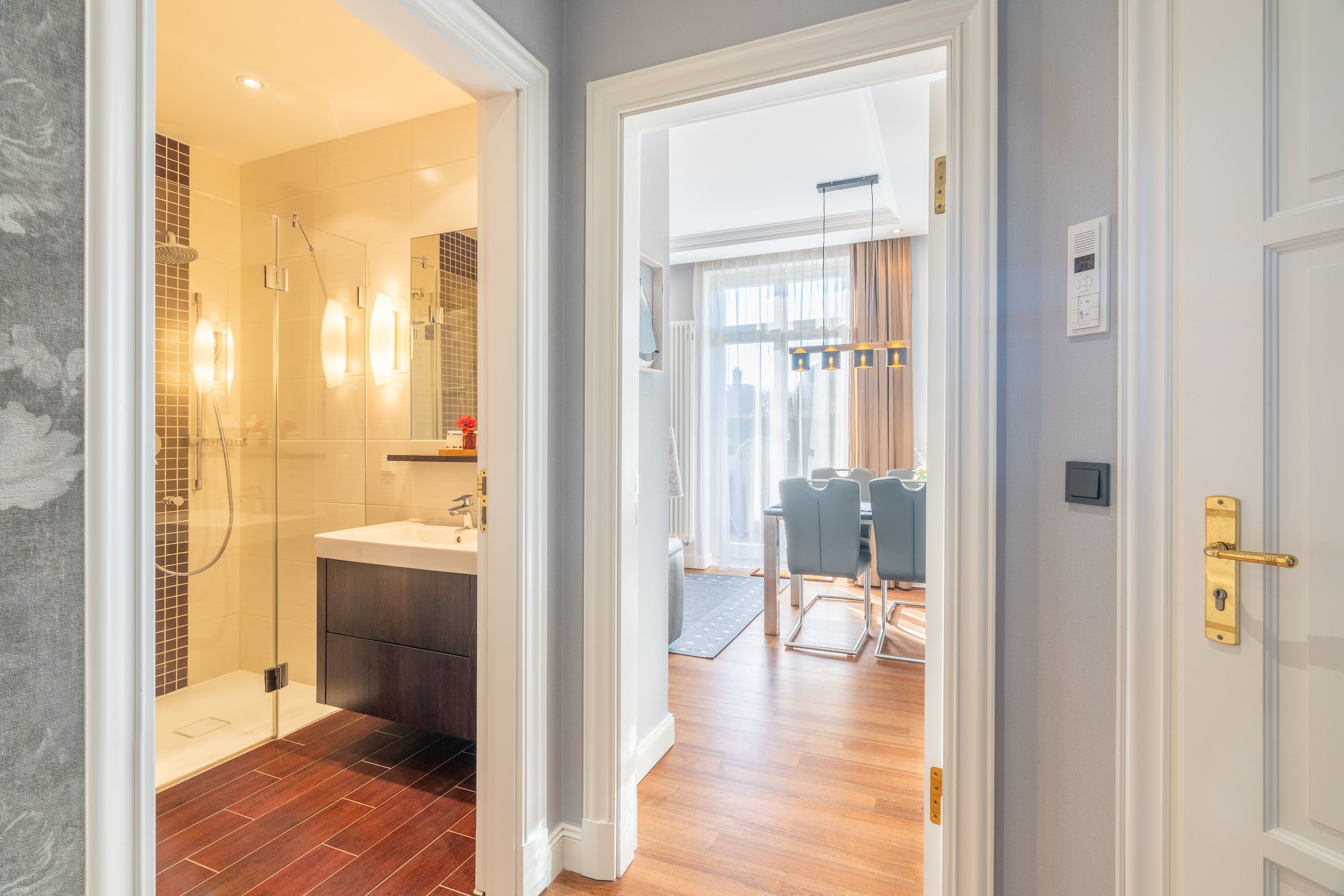 Damit Sie Ihre wohlverdiente Urlaubszeit bereits am Anreisetag in vollen Zügen genießen können haben wir das Bett für Sie und das für Ihre lieben Mitreisenden bereits bezogen und ein Duschtuch sowie ein kleines Handtuch bereitgelegt. Das Badezimmer mit WC und einem Haarfön - überzeugt mit einer Raindance-Dusche und einer superflachen Duschtasse im edlen Design.