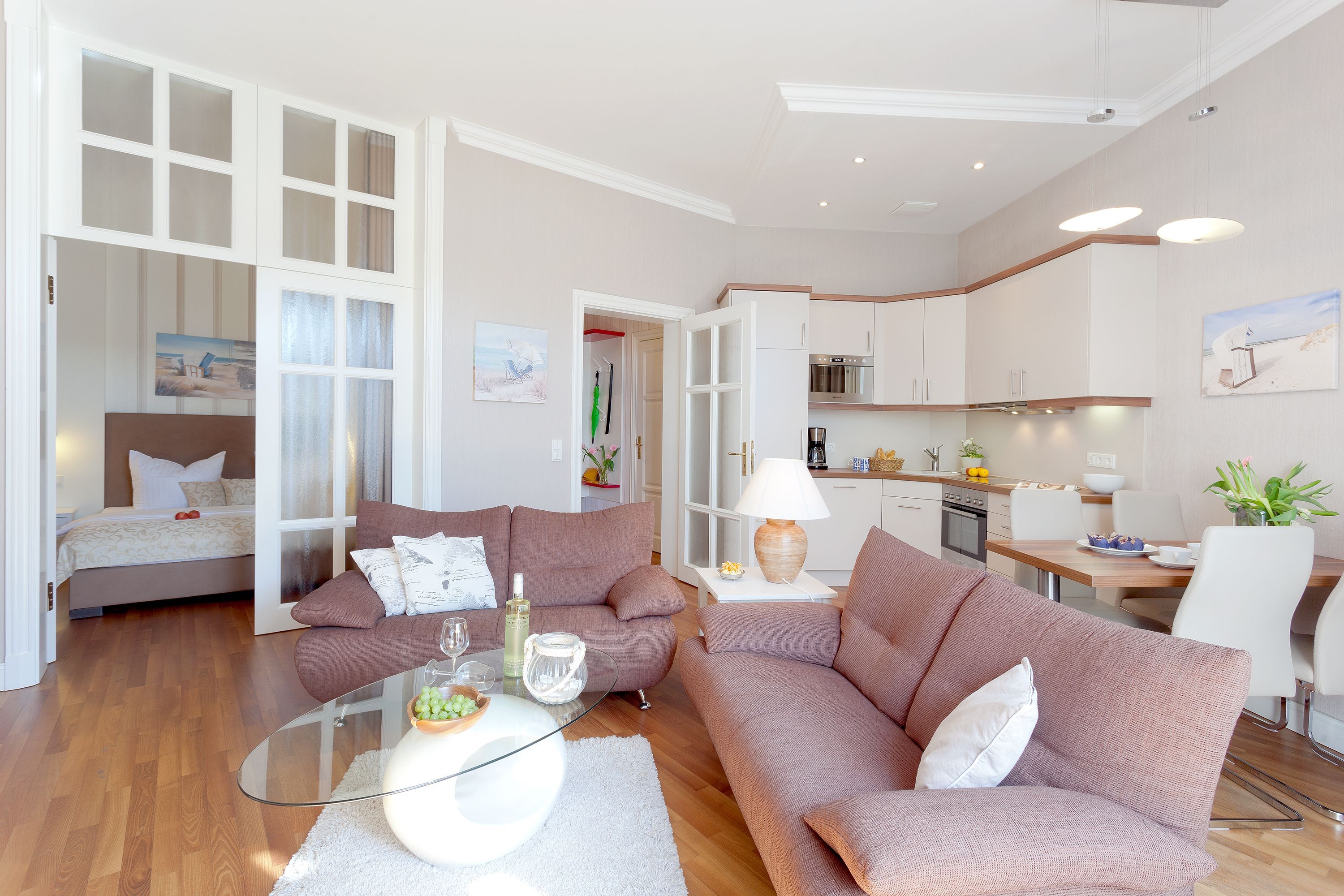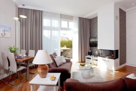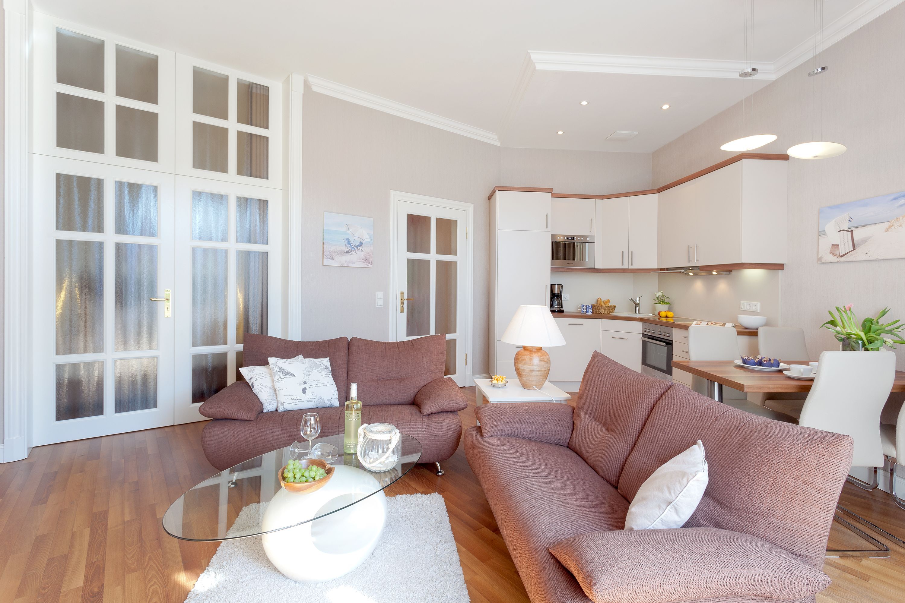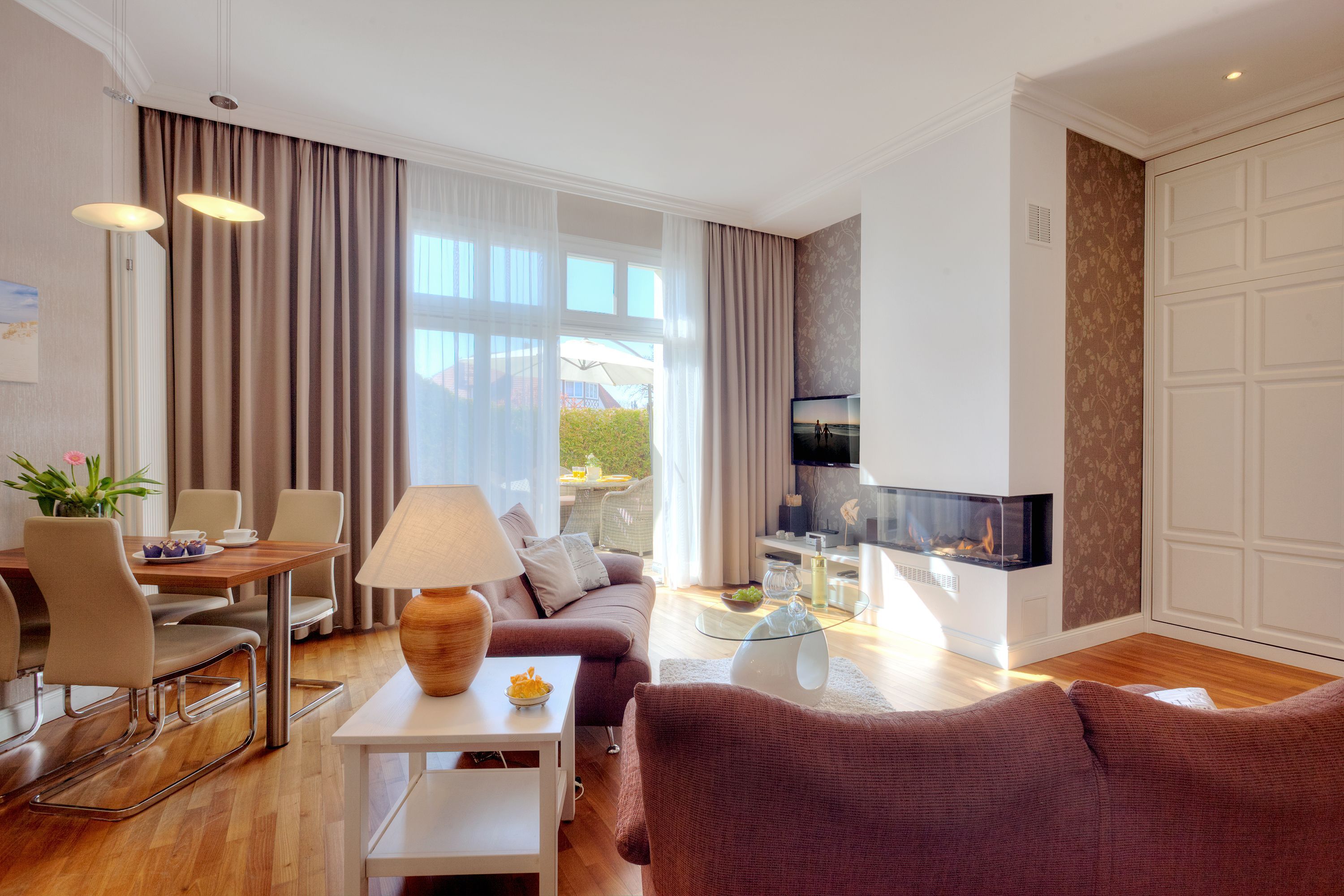 Das geschmackvolle 2 Raum-Appartement im Erdgeschoss mit einer Größe von 58 Quadratmetern ist das perfekte Urlaubsdomizil für Paare als auch wegen seiner 4 vollwertigen Betten für zwei Paare und Familien. Der moderne Wohnbereich mit Gaskamin, Flat-TV und komfortabler Küchenzeile (Geschirrspüler, Kühlschrank mit Gefrierfach, Backofen, Mikrowelle, Wasserkocher, Toaster, Kaffeemaschine) lädt zum Verweilen ein.