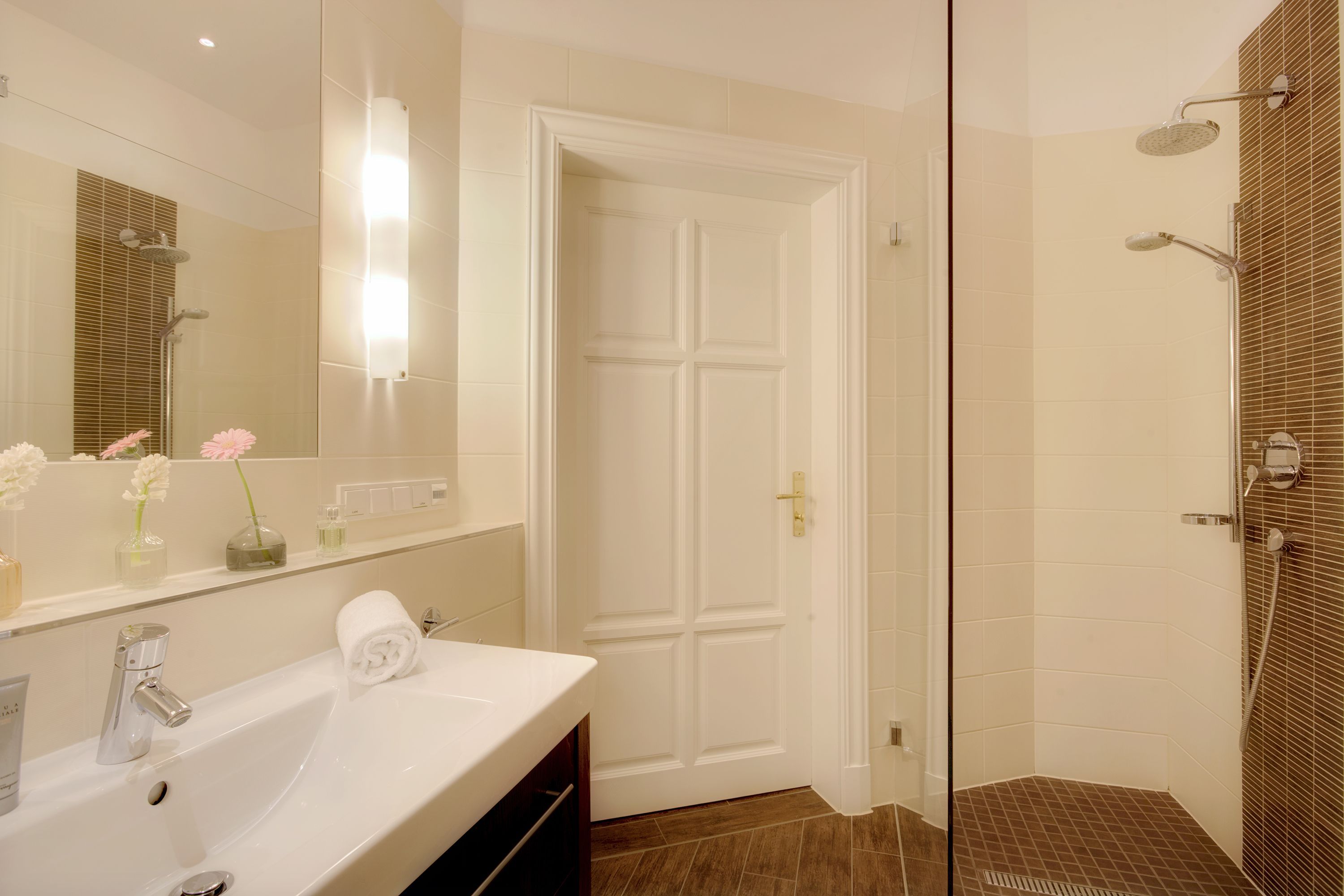 Damit Sie Ihre wohlverdiente Urlaubszeit bereits am Anreisetag in vollen Zügen genießen können haben wir das Bett für Sie und das für Ihre lieben Mitreisenden bereits bezogen und ein Duschtuch sowie ein kleines Handtuch bereitgelegt. Das großzügige Badezimmer ist mit einer ebenerdigen XXL Echtglasdusche, WC und einem Haarfön ausgestattet.