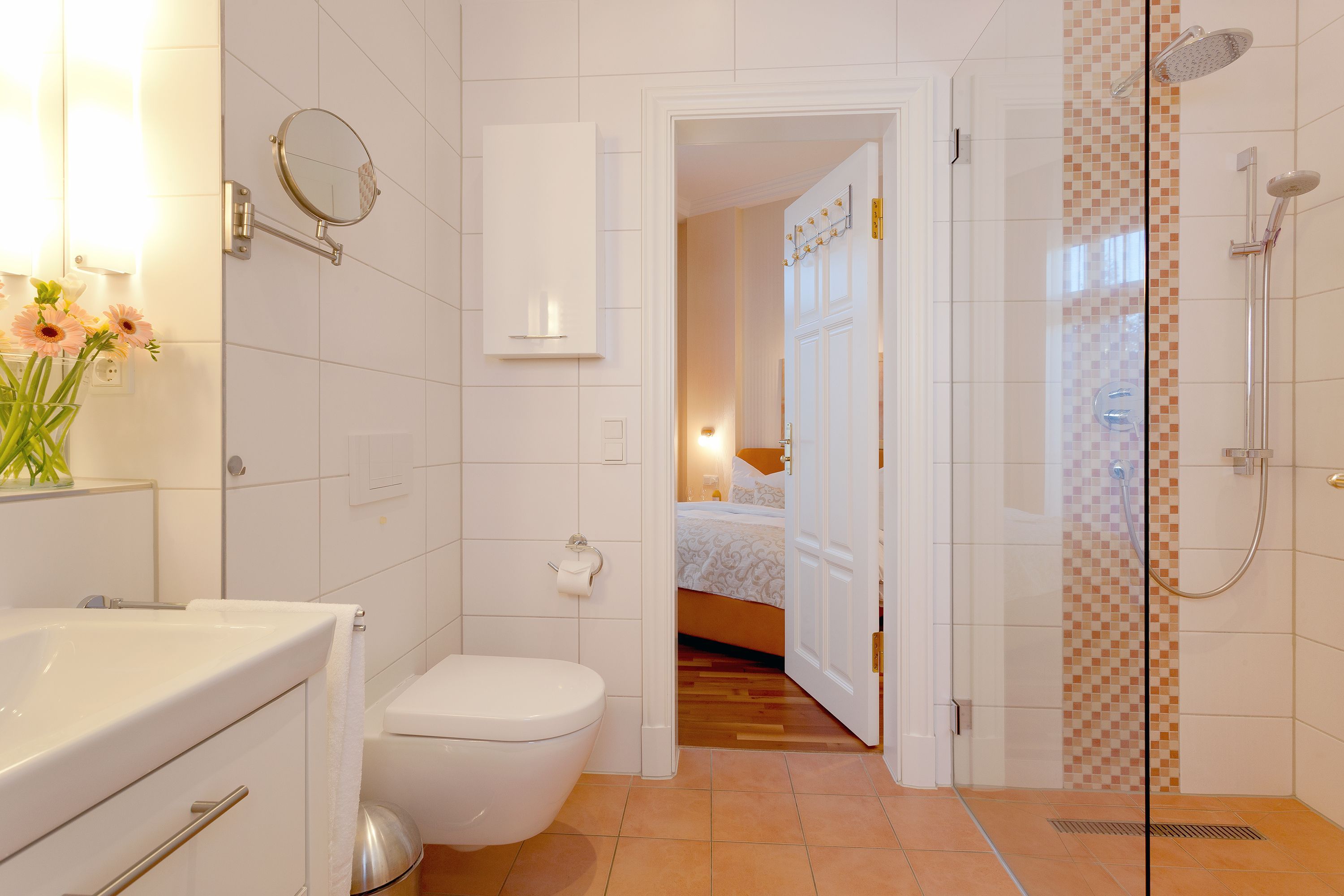 Damit Sie Ihre wohlverdiente Urlaubszeit bereits am Anreisetag in vollen Zügen genießen können, haben wir das Bett für Sie und das für Ihre lieben Mitreisenden bereits bezogen und ein Duschtuch sowie ein kleines Handtuch bereitgelegt. Das Badezimmer ist mit einer ebenerdigen Echtglas-Dusche, WC und einem Haarfön ausgestattet. So beginnt jeder Tag mit einem Lächeln!