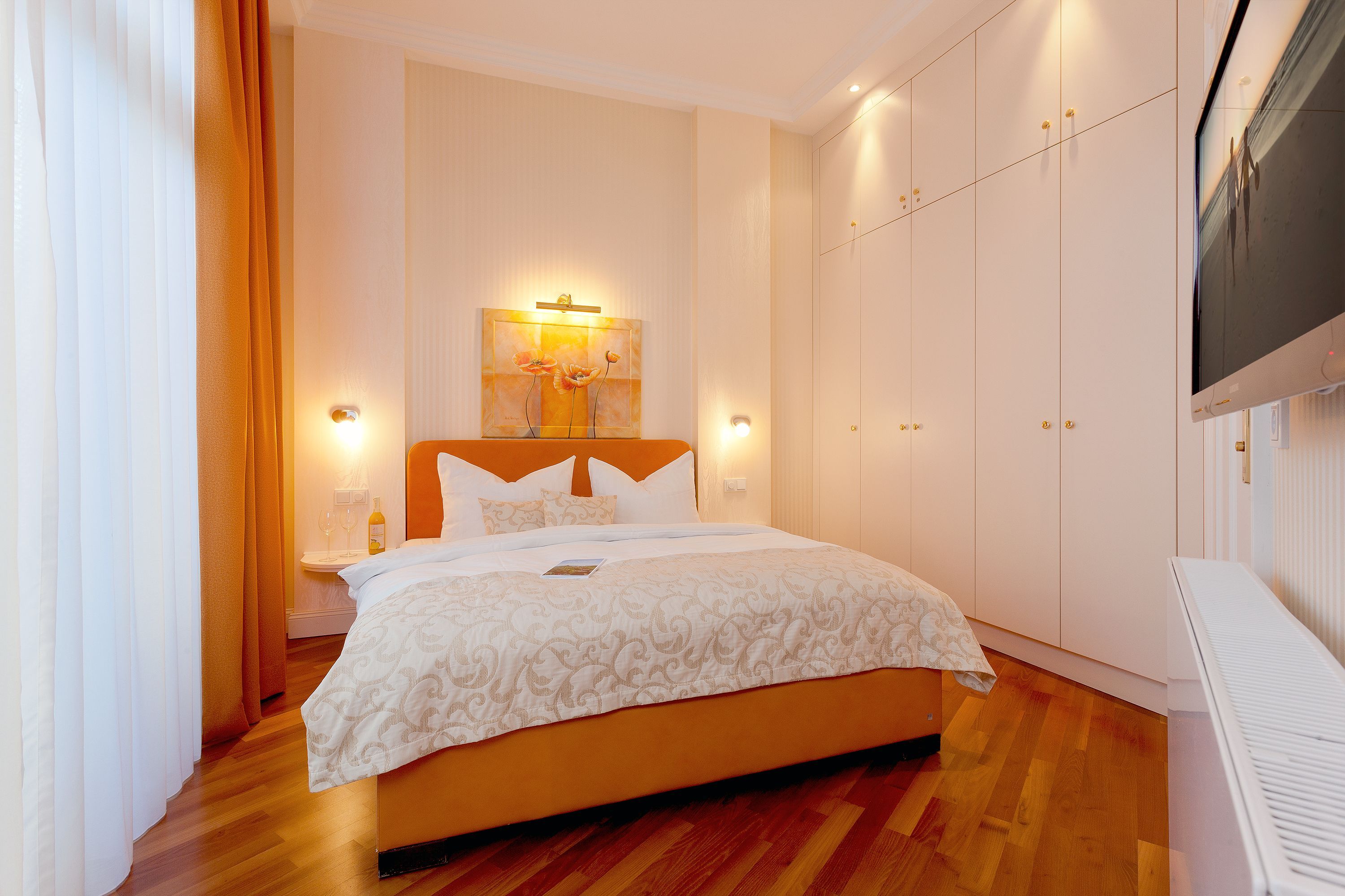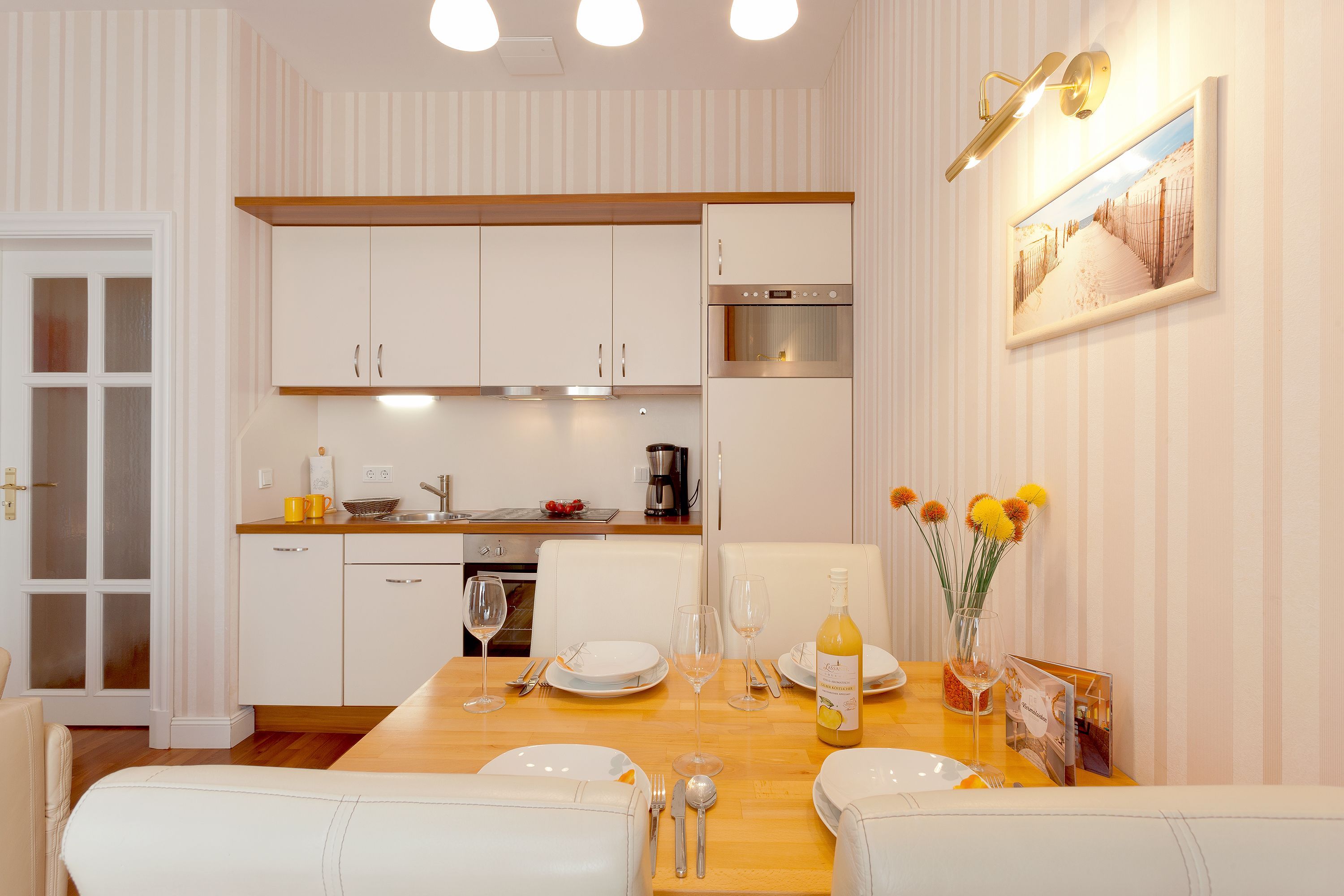 Die integrierte luxuriöse Küchenzeile lässt Dank Geschirrspüler, Kühlschrank mit Gefrierfach, Backofen, Mikrowelle, Wasserkocher, Toaster, Kaffeemaschine keine Wünsche offen. Vom Wohn- und Schlafzimmer betreten Sie Ihre private Nordost-Terrasse. Auch das Schlafzimmer ist ein Highlight. In dem bequemen Boxspringbett (160 x 200cm / zwei getrennte Matratzen) können Sie von Ihren Erlebnissen auf der schönen Insel Usedom träumen, neue Kräfte für den nächsten Tag schöpfen oder einfach vor dem TV relaxen.