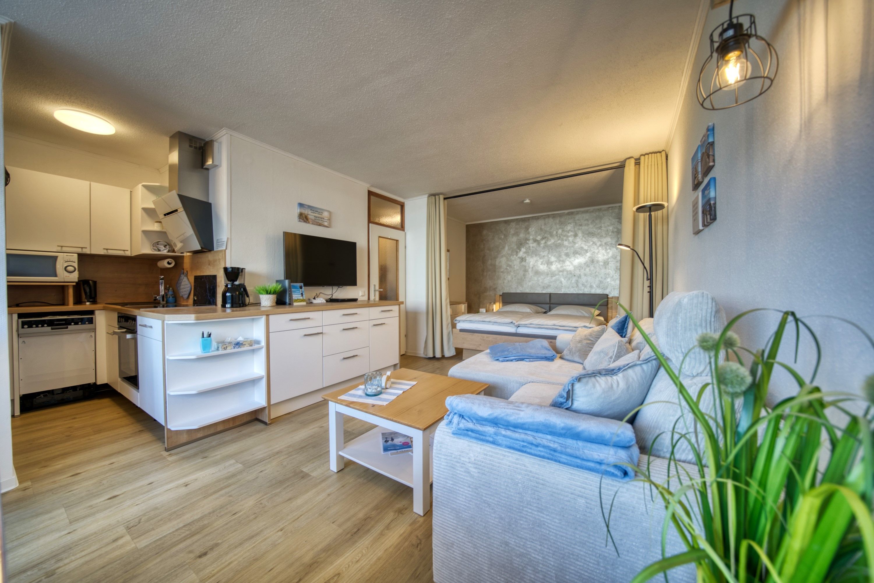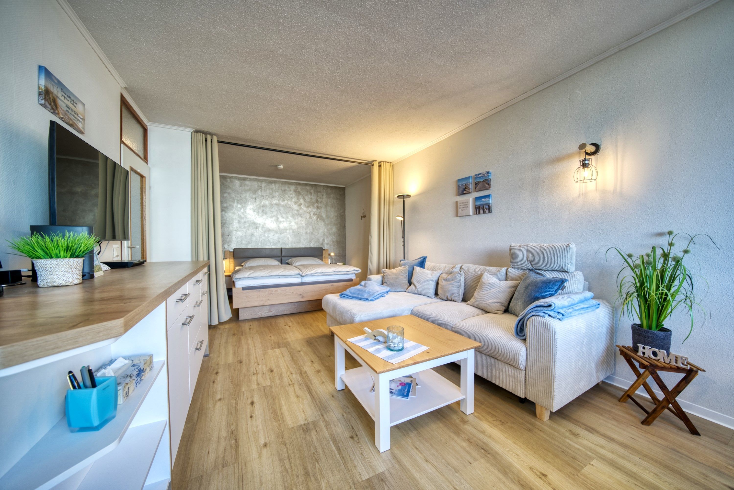 - offener Wohnschlafbereich (mit Vorhang abzutrennen)