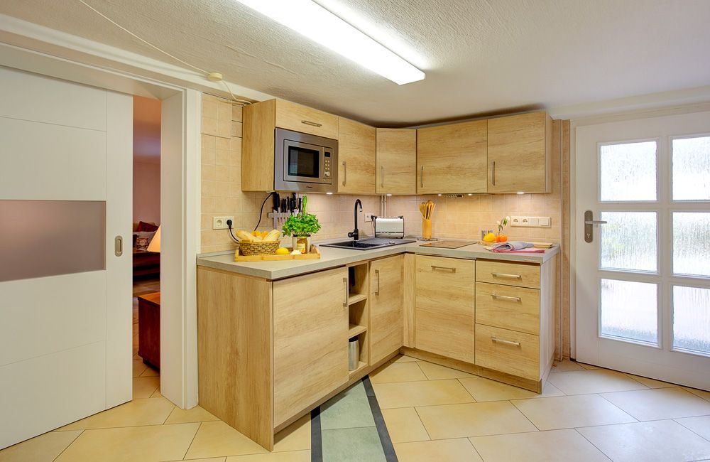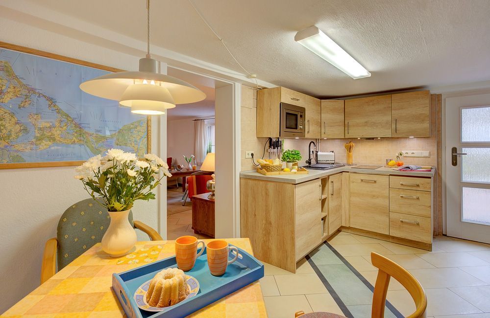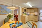 Damit Sie Ihre wohlverdiente Urlaubszeit bereits am Anreisetag in vollen Zügen genießen können, haben wir das Bett für Sie und das für Ihre lieben Mitreisenden bereits bezogen und ein Duschtuch sowie ein kleines Handtuch bereitgelegt. Die separate Küche mit moderner Küchenzeile inkl. Induktionskochfeld (2Felder), Geschirrspüler, Mikrowelle m. Grillfunktion, Kühlschrank mit Gefrierfach, Wasserkocher, Toaster, Kaffeemaschine sowie Eierkocher lässt keine Wünsche offen. An dem Esstisch können Sie Platz nehmen um den kulinarischen Freuden zu frönen.