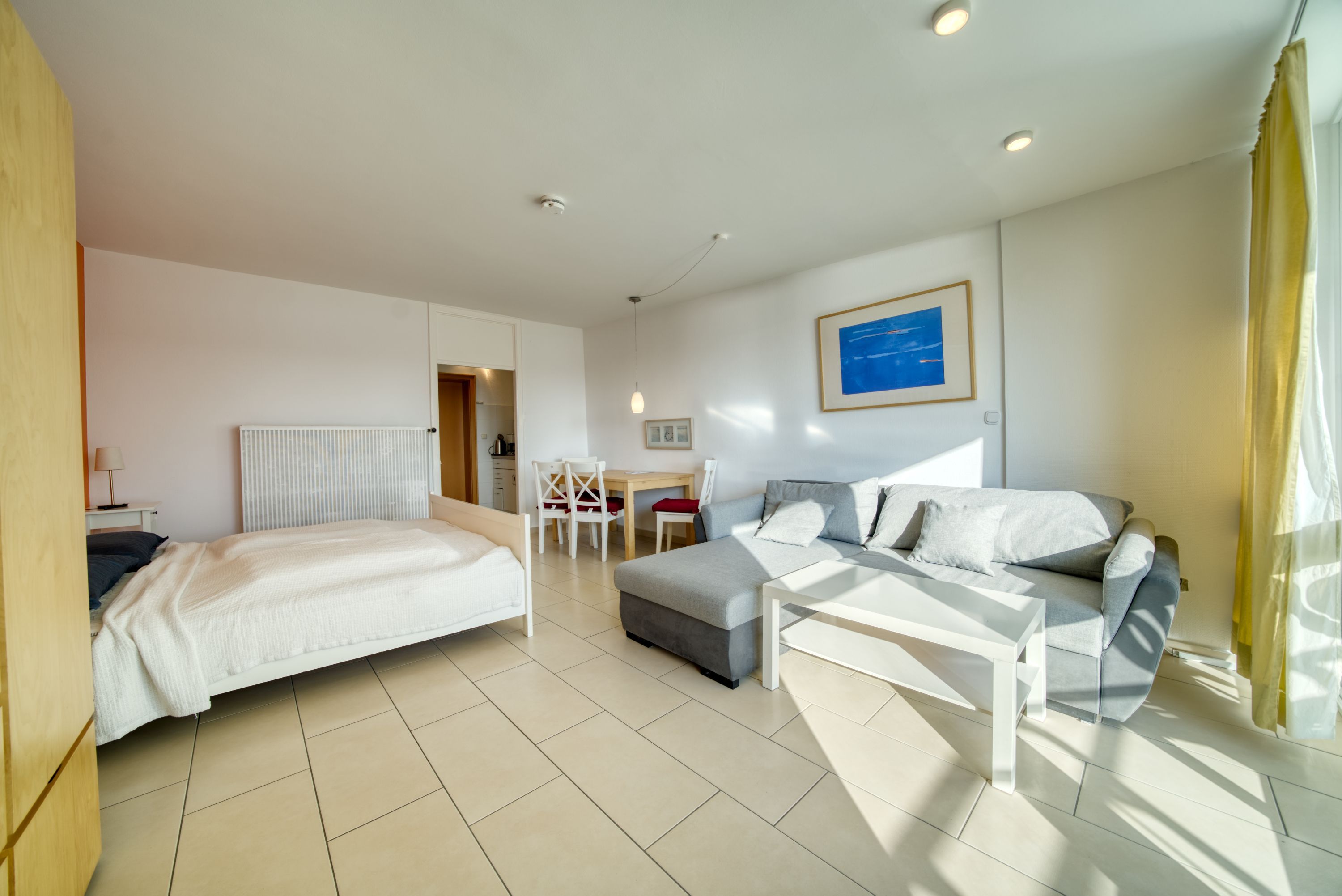 Das Appartementhaus Strandhotel liegt auf einer Dünenhalbinsel zwischen Ostsee und Binnensee. Der Hauptbadestrand liegt dem Objekt direkt gegenüber. Diese schöne Wohnung liegt im 1. Geschoss und bietet einen herrlichen Blick auf den Binnensee. Sie verfügt über eine Wohnfläche von ca. 31 qm mit folgender Aufteilung: Wohn-Schlafzimmer mit Doppelbett, Küche mit 2-Plattenherd und Kühlschrank. WC mit Duschkabine. Der Balkon wurde 2018 komplett erneuert.