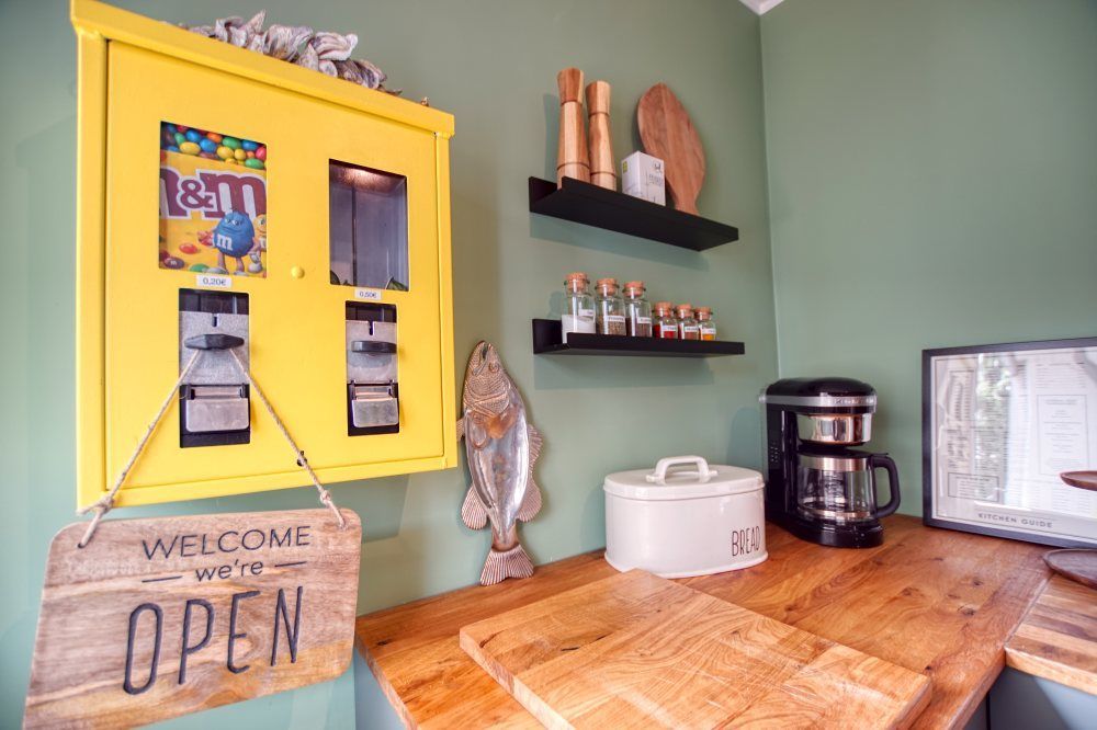 Voll ausgestattete Küche mit Induktionsherd, Gefrierfach, Backofen, Spülmaschine und Nespresso-Kaffeemaschine