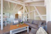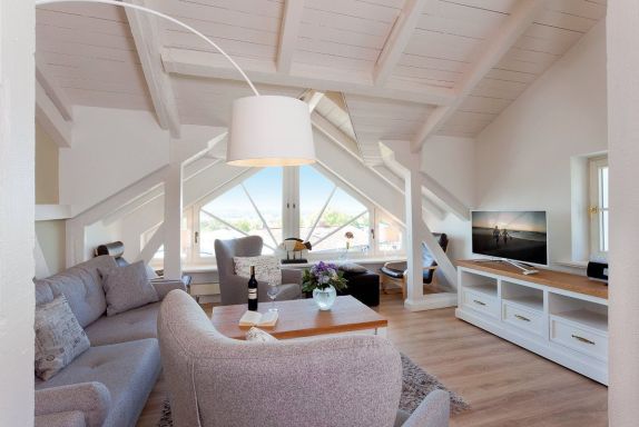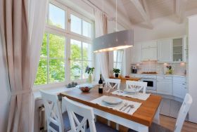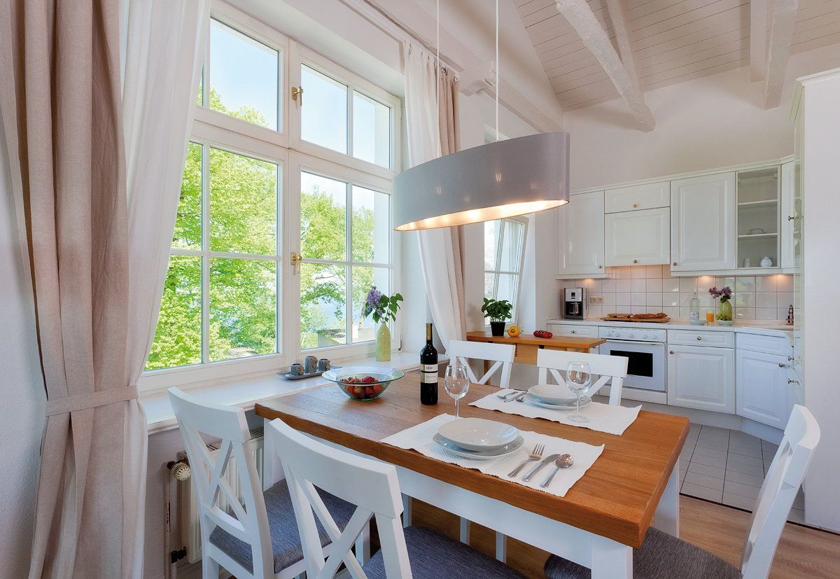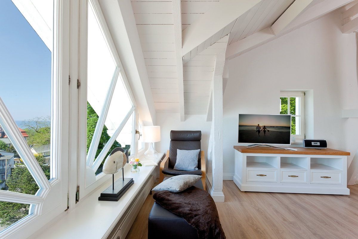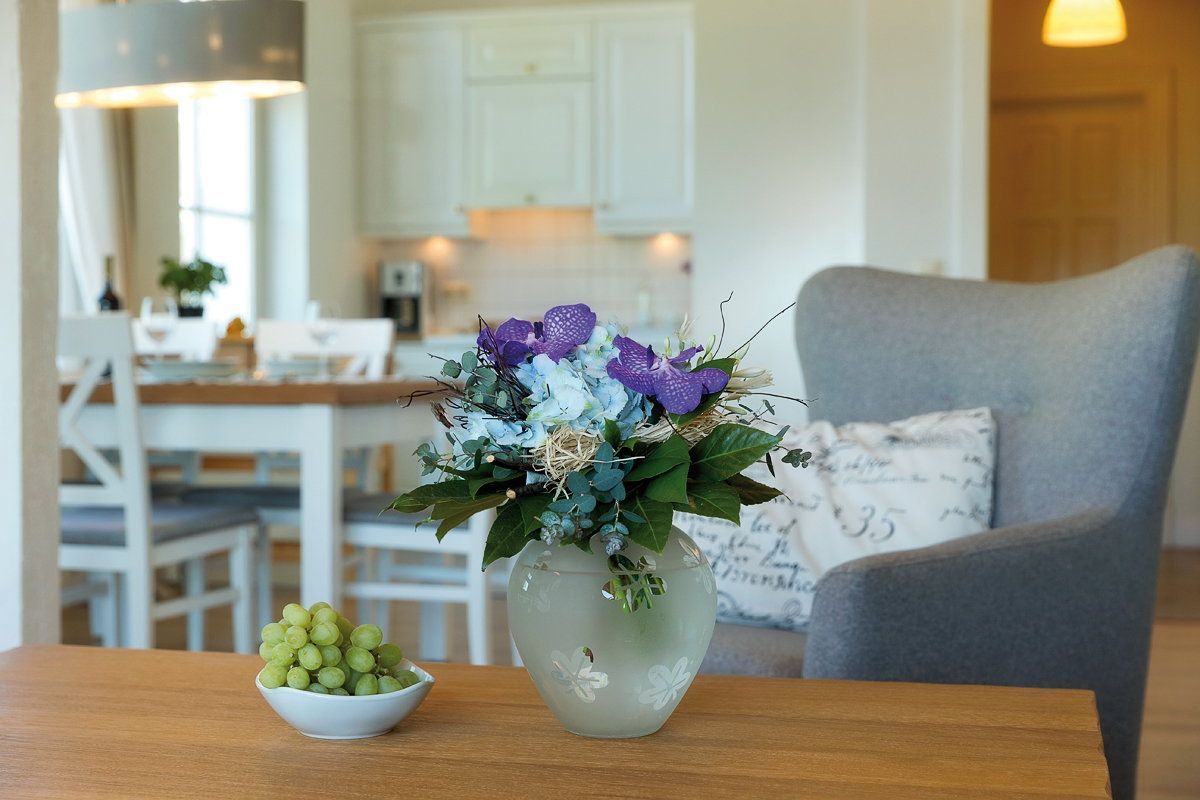 Highlight des Appartements ist die große Fensterfront des Wohnzimmers, die einen tollen Blick auf die Ostsee und über die Dächer von Heringsdorf bis nach Bansin gewährt. Aber auch vom Esstisch und in der Küche genießen Sie den Meerestraum Pur.