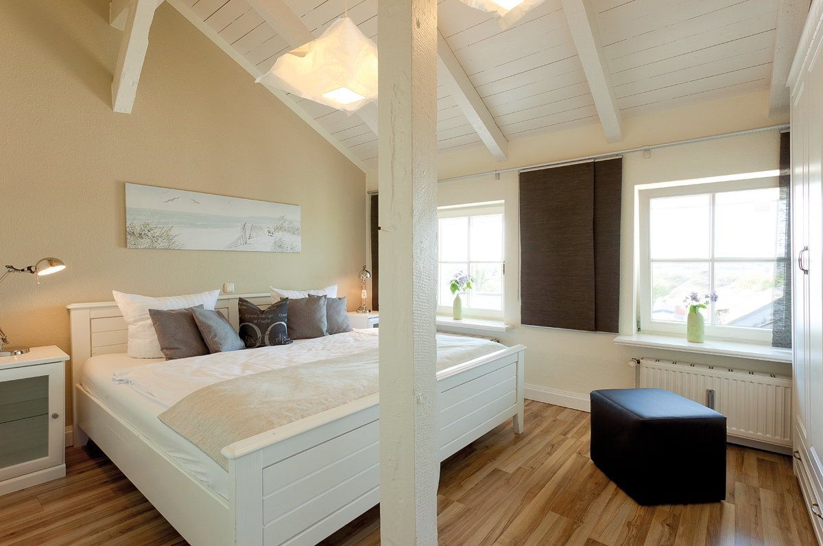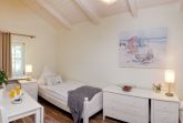 Die insgesamt fünf Schlafplätze verteilen sich auf zwei Schlafzimmer sowie einer Aufbettung auf dem Sofa im Wohnzimmer. Das erste Schlafzimmer ist mit einem komfortablen Doppelbett (200 x 200cm / zwei getrennte Matratzen) ausgestattet. Für die unterhaltsamen Stunden vom Bett aus sorgt der Flat TV. Das Kinderschlafzimmer verfügt über zwei Einzelbetten (je 80 x 200cm).