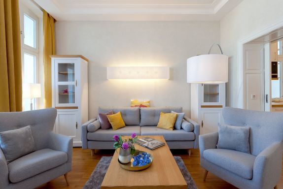 Auf 65 Quadratmetern begrüßen wir Sie in dem 2-Raum-Appartement im Hochparterre der Villa Pia Marie im modernen und gemütlichen Landhausstil zu sonnigen und erholsamen Urlaubstagen.