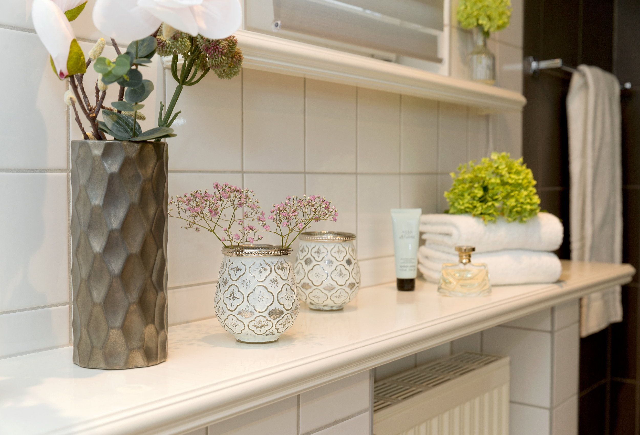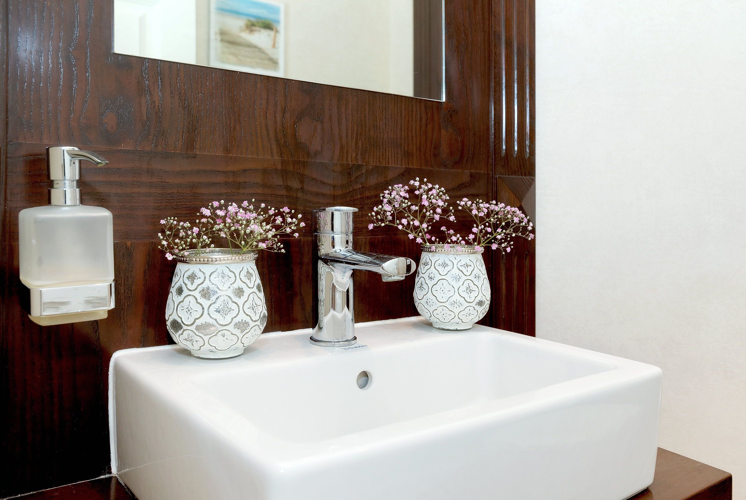 Komfortabel gestaltet erwartet Sie das Badezimmer en Suite mit einer Dusche, WC, Haartrockner, und einem Doppelwaschtisch sowie einem Handtuchheizkörper. Ein Gäste-WC komplettiert den erstklassigen Urlaubskomfort und ist vom Flur des Appartements begehbar.
