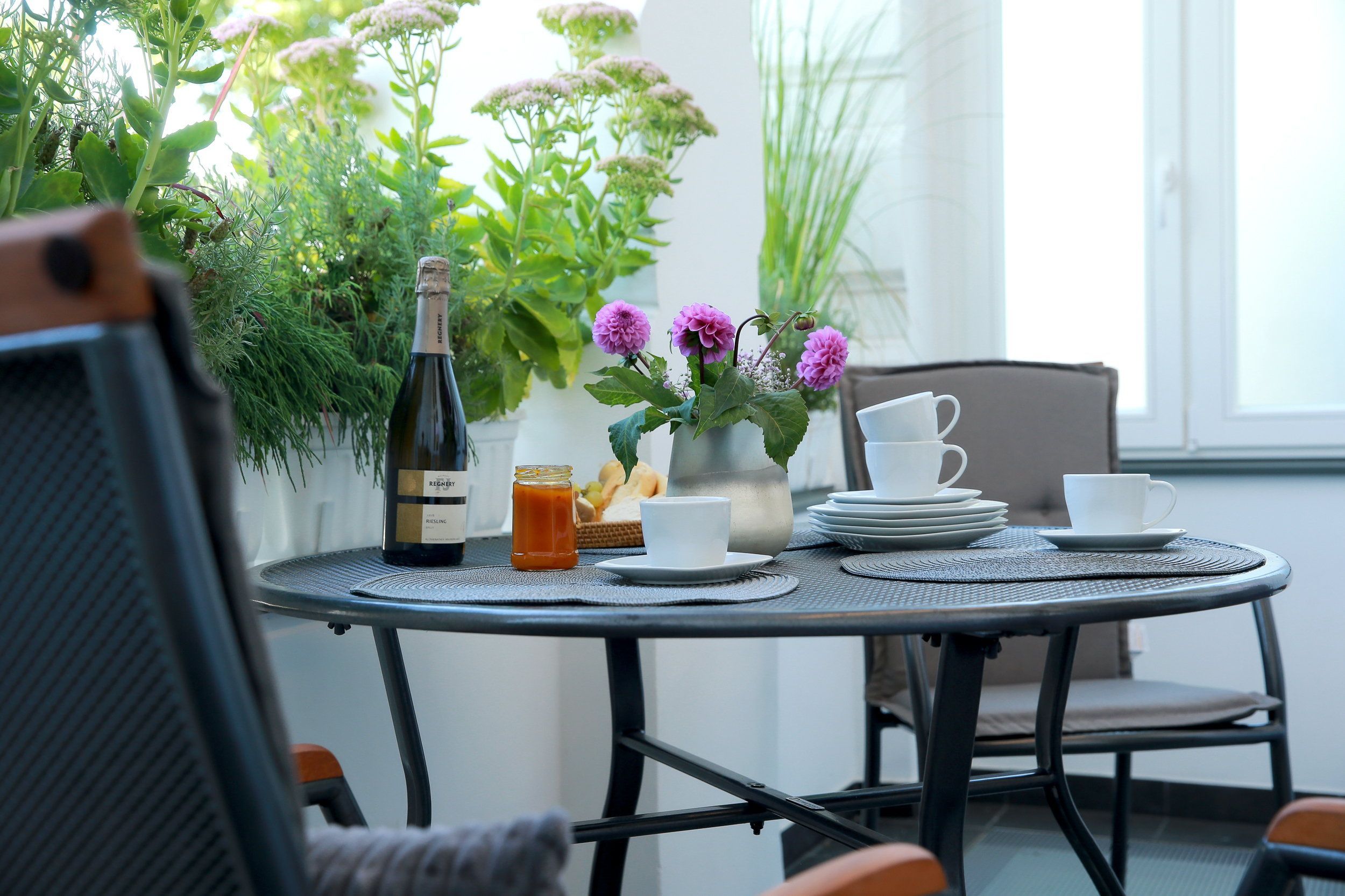 Vom Wohn- und Essbereich haben Sie Zugang zum sonnigen Süd-West-Balkon: lauschen Sie dem Rauschen der Ostsee und Entspannen Sie bei gemeinsamen Erzählungen über Ihre Urlaubserlebnisse.
