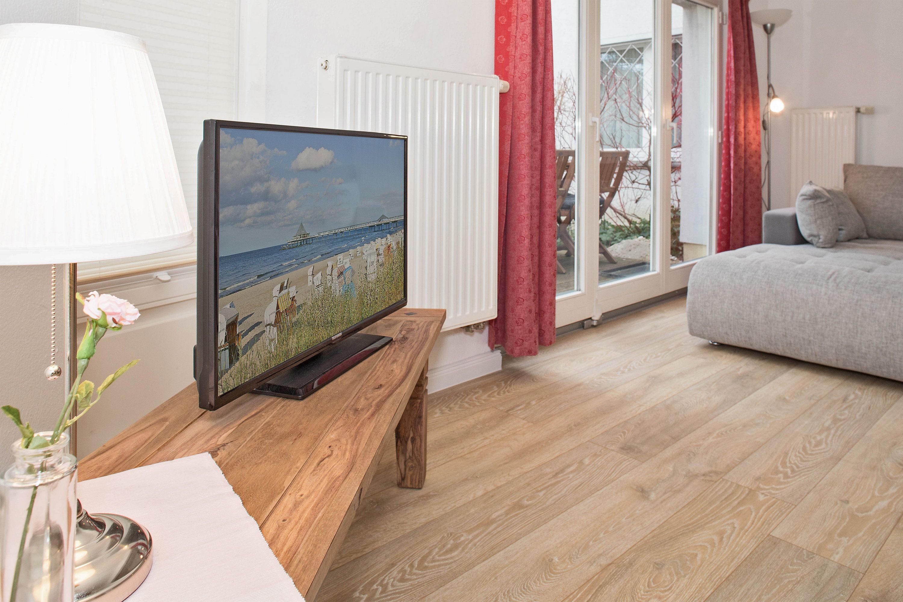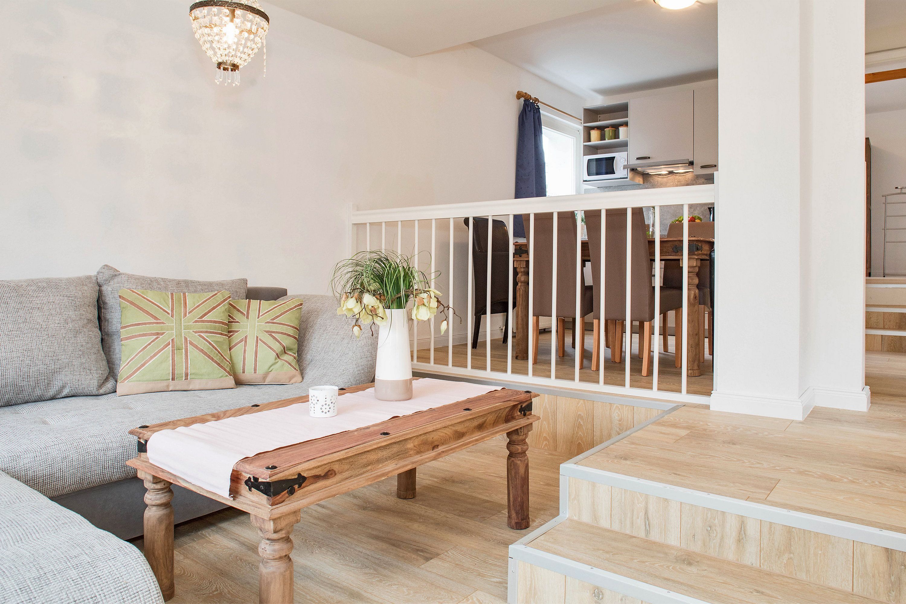 Das 3-Raum-Appartement Nr. 1 im Erdgeschoss der Villa Helene mit separatem Eingang begrüßt bis zu vier Personen zur wohlverdienten Urlaubszeit. Dank der Stufen im Eingangsbereich, vor dem Schlaf- und Badezimmer erlangt das Appartement einen sehr offenen Charakter und wirkt selbst mit seinen 50 Quadratmetern sehr großzügig. Der helle Wohnbereich mit bequemer Couch und zwei Sesseln lädt zum Entspannen vor dem Flat-TV ein. Genießen Sie die in der gut ausgestattete Küche (Backofen, Ceranfeld-2Felder, Geschirrspüler, Kühlschrank, Kaffeemaschine, Wasserkocher, Toaster) zubereiteten Speisen auf der angrenzenden Nordostterrasse bei einem Glas Wein im Grünen und am Abend mit Blick auf den Sternenhimmel. Anschließend erledigt der Geschirrspüler den Abwasch für Sie während Sie in Ruhe einen erlebnisreichen Urlaubstag bei einem gemütlichen Beisammensein am großzügigen Esstisch ausklingen lassen. Zur Nachtruhe laden zwei Schlafzimmer zum Träumen von einem bevorstehenden oder bereits vergangenen erlebnisreichen Urlaubstag ein. Beide Schlafzimmer verfügen über ein bequemes Doppelbett (140 x 200cm / 160 x 200cm / jeweils eine durchgehende Matratze).