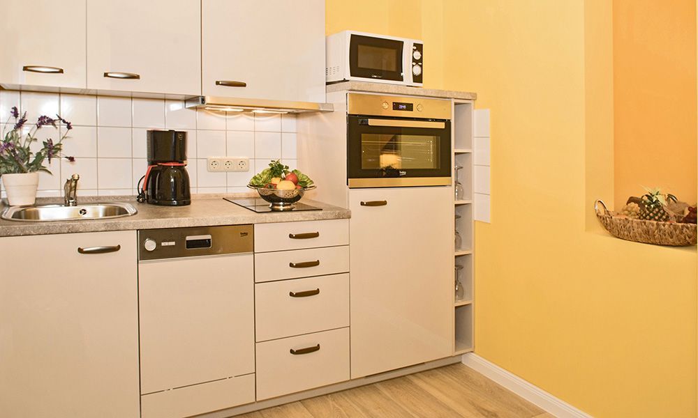 Die angrenzende lichtdurchflutete Loggia ist Dank einladender Essecke genau der richtige Ort, um die in der gut ausgestatteten Küche (Kühlschrank mit Gefrierfach, Mikrowelle, Toaster, Wasserkocher, Kaffeemaschine, Spülmaschine) zubereiteten Speisen, gemeinsam zu genießen oder den Tag bei Gesprächen über die Urlaubserlebnisse bei einem Glas Wein ausklingen zu lassen.