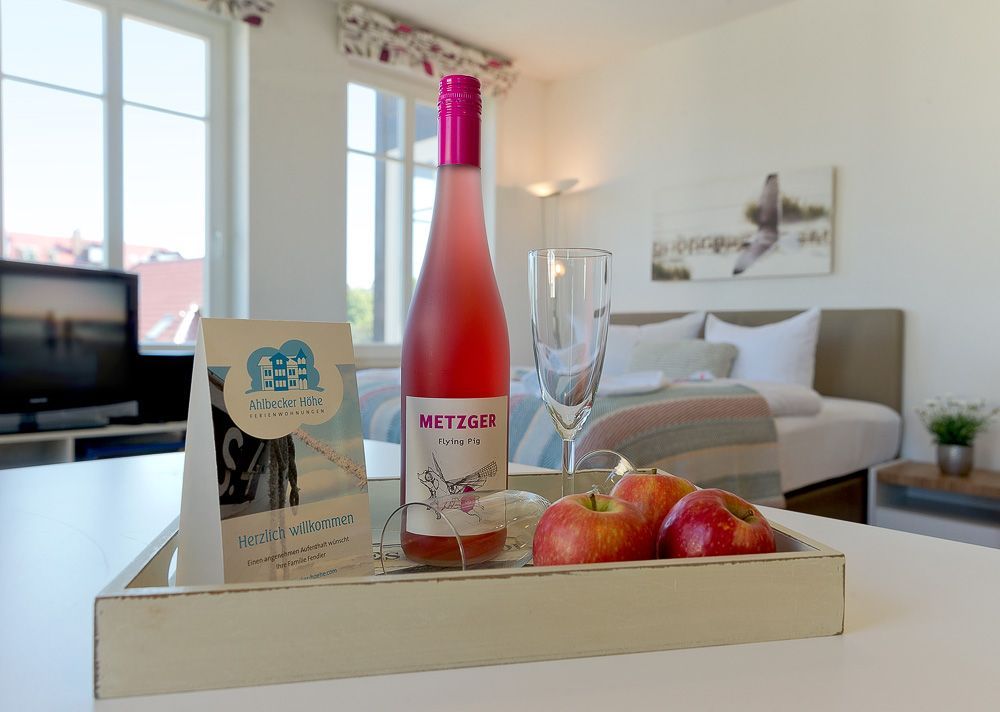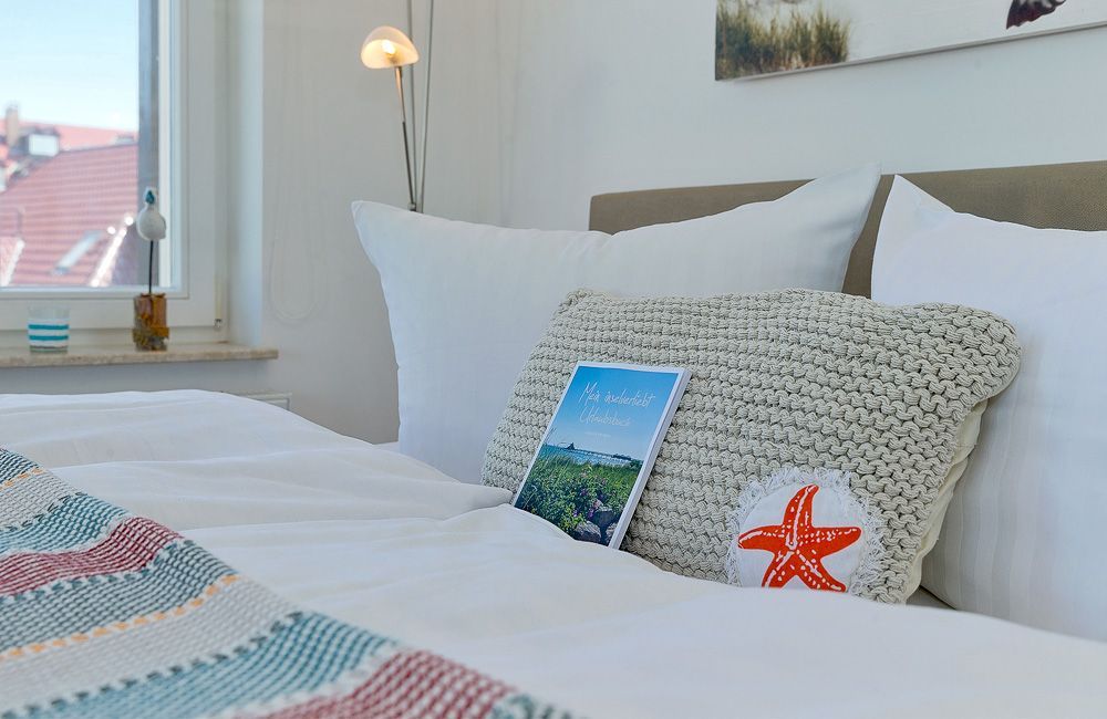 Damit Sie Ihre wohlverdiente Urlaubszeit bereits am Anreisetag in vollen Zügen genießen können, haben wir das Bett für Sie und das für Ihre lieben Mitreisenden bereits bezogen und ein Duschtuch sowie ein kleines Handtuch bereitgelegt. Die im Wohnbereich integrierte komplett ausgestattete Einbauküche verfügt zudem über Kühlschrank, Mikrowelle, Ceran-Kochfeld (4 Platten), Spülmaschine, Wasserkocher, Toaster, Kaffeemaschine (4er Filter), Messerblock.