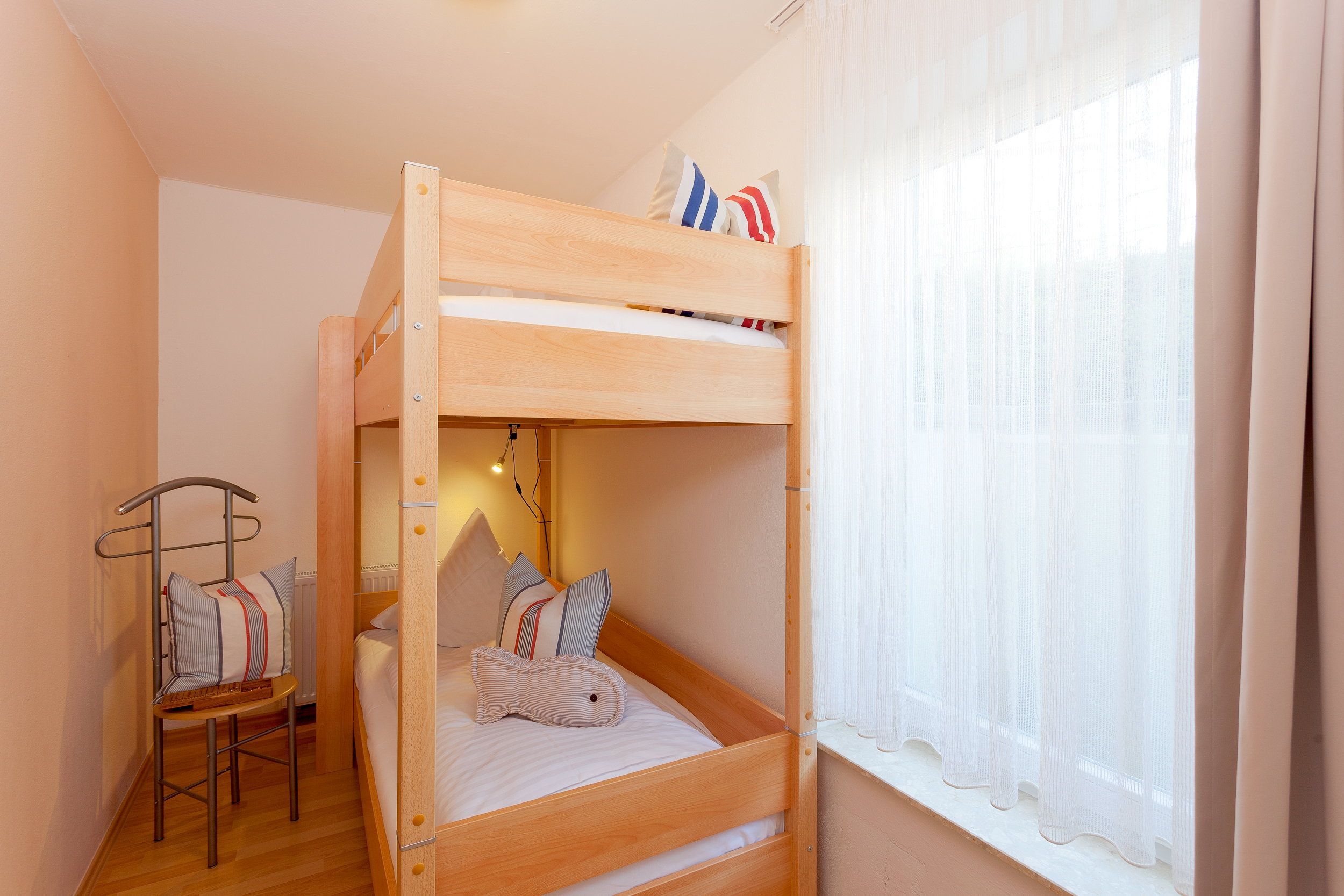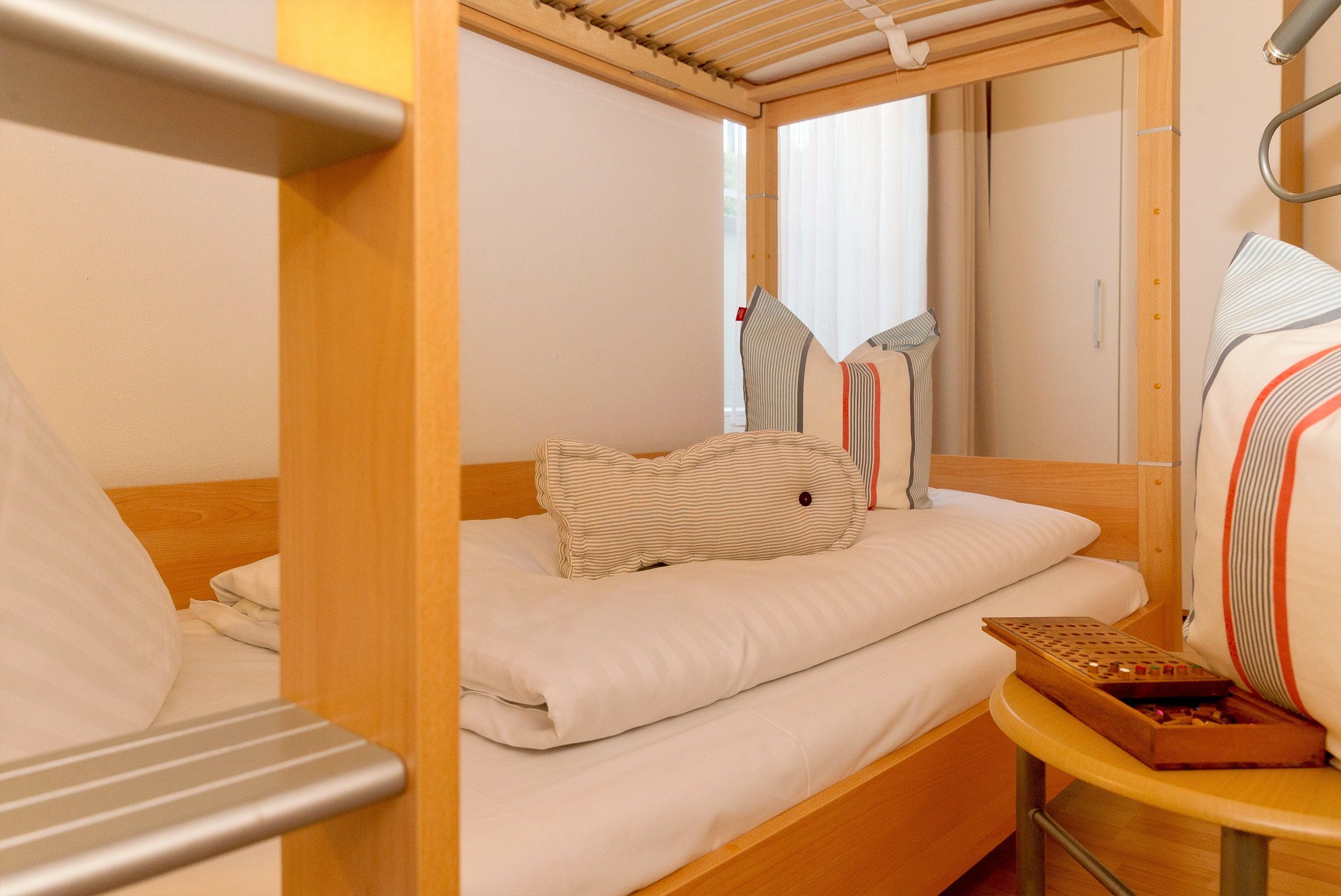 Damit Sie Ihre wohlverdiente Urlaubszeit bereits am Anreisetag in vollen Zügen genießen können, haben wir das Bett für Sie und das für Ihre lieben Mitreisenden bereits bezogen und ein Duschtuch sowie ein kleines Handtuch bereitgelegt. Die Aufbettung für ein Kind ist im Schlafzimmer im Babyreisebett (max. 3 Jahre) oder auf Faltmatratze (3 bis10 Jahre) 80 x 200 cm möglich. Im 2. Schlafzimmer befindet sich für unsere kleineren Gäste ein Etagenbett (jeweils 90 x 200cm). Das Badezimmer ist mit Dusche, WC, Handtuchtrockner und Fußbodenheizung ausgestattet.