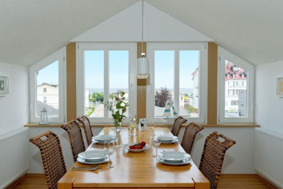 Das 3-Raum Appartement ist mit seinen 74 Quadratmetern das Highlight der Zwillingshäuser Ahlbecker Höhe. Es befindet sich im Dachgeschoss im Seebad Ahlbeck und bietet bis zu 6 Personen entspannte Urlaubstage bei wundervollem Meerblick.