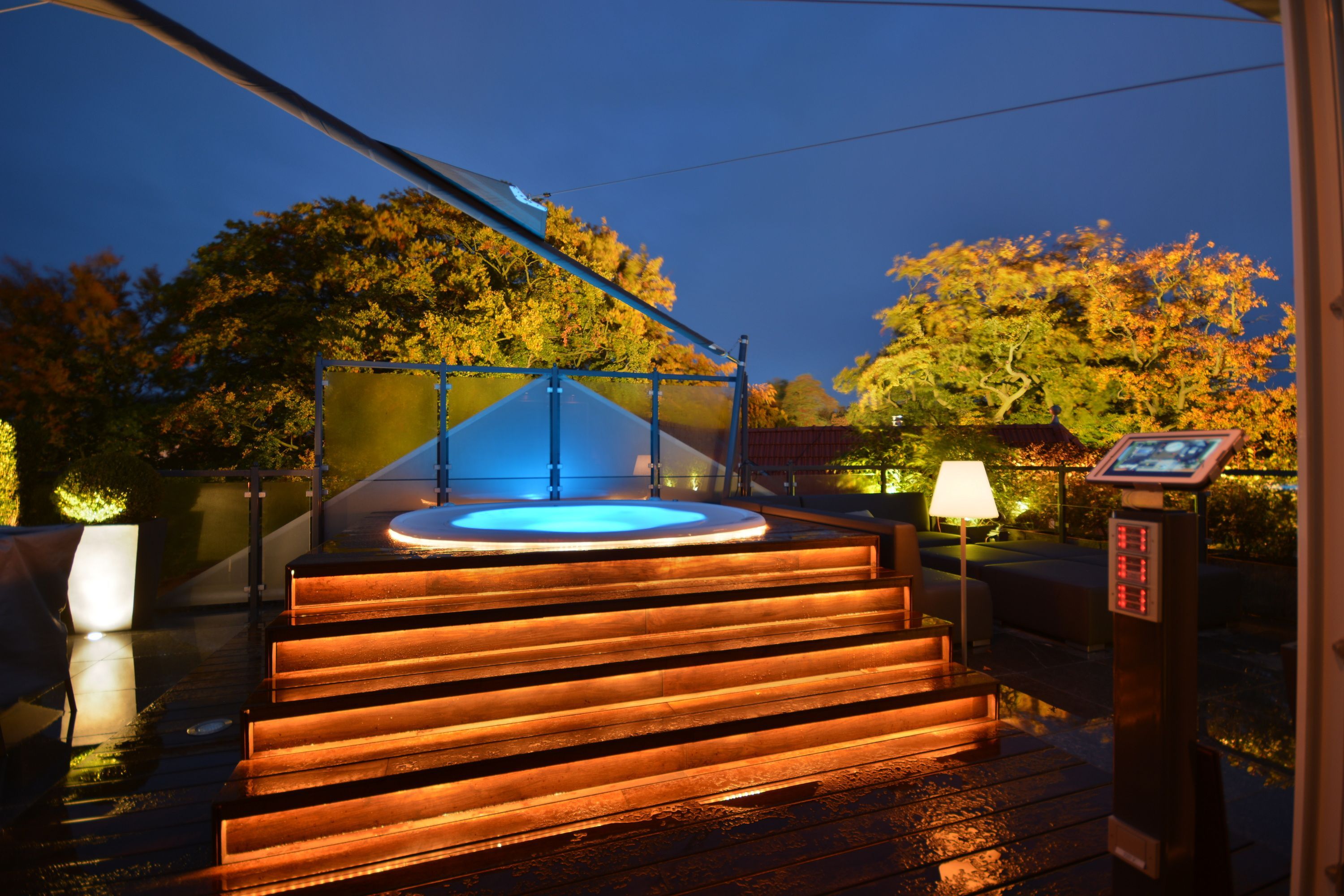 Highlight der Suite ist die atemberaubende Dachterrasse mit Ostseeblick. Erleben Sie Wohnen unter freiem Himmel mit einem ganzjährig beheiztem Whirlpool. Die Dachterrasse verfügt zudem über einen beheizten Esstisch für 8 Personen und einer XXL Sitzecke mit großem Sonnensegel. Eine Außendusche und die Nutzung der Outdoor-Küche ergänzen vom Frühjahr bis zum Herbst den Komfort.