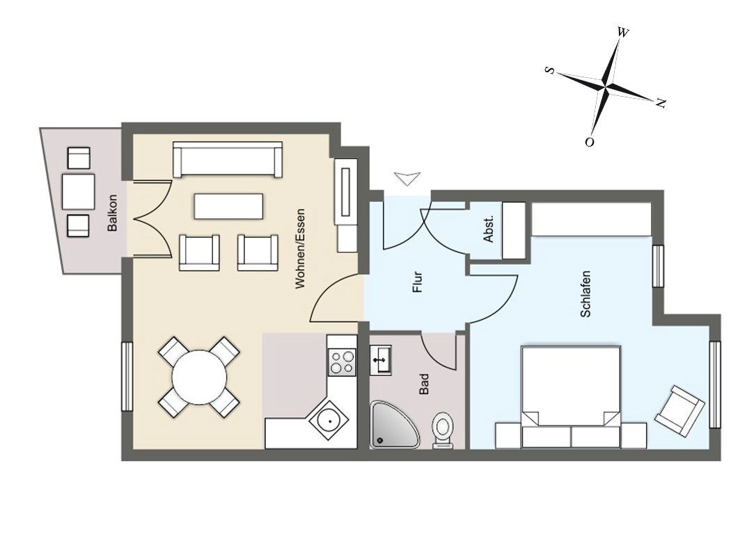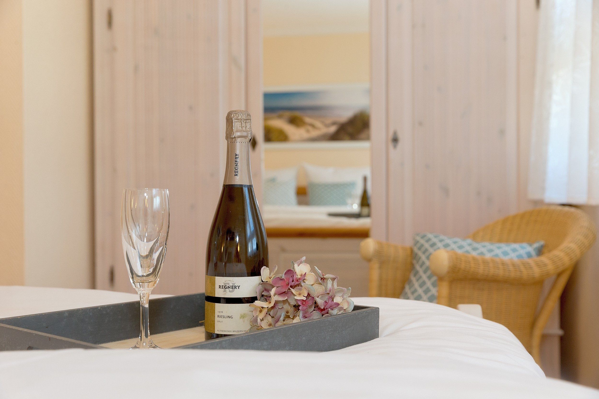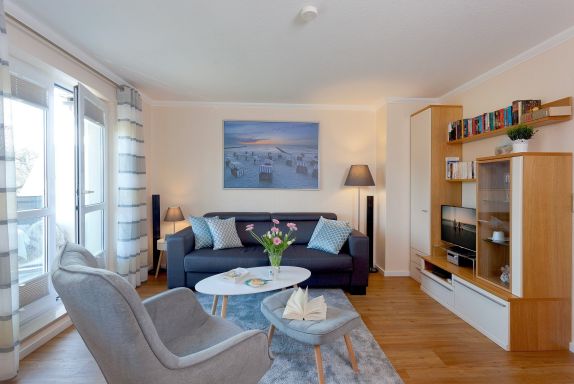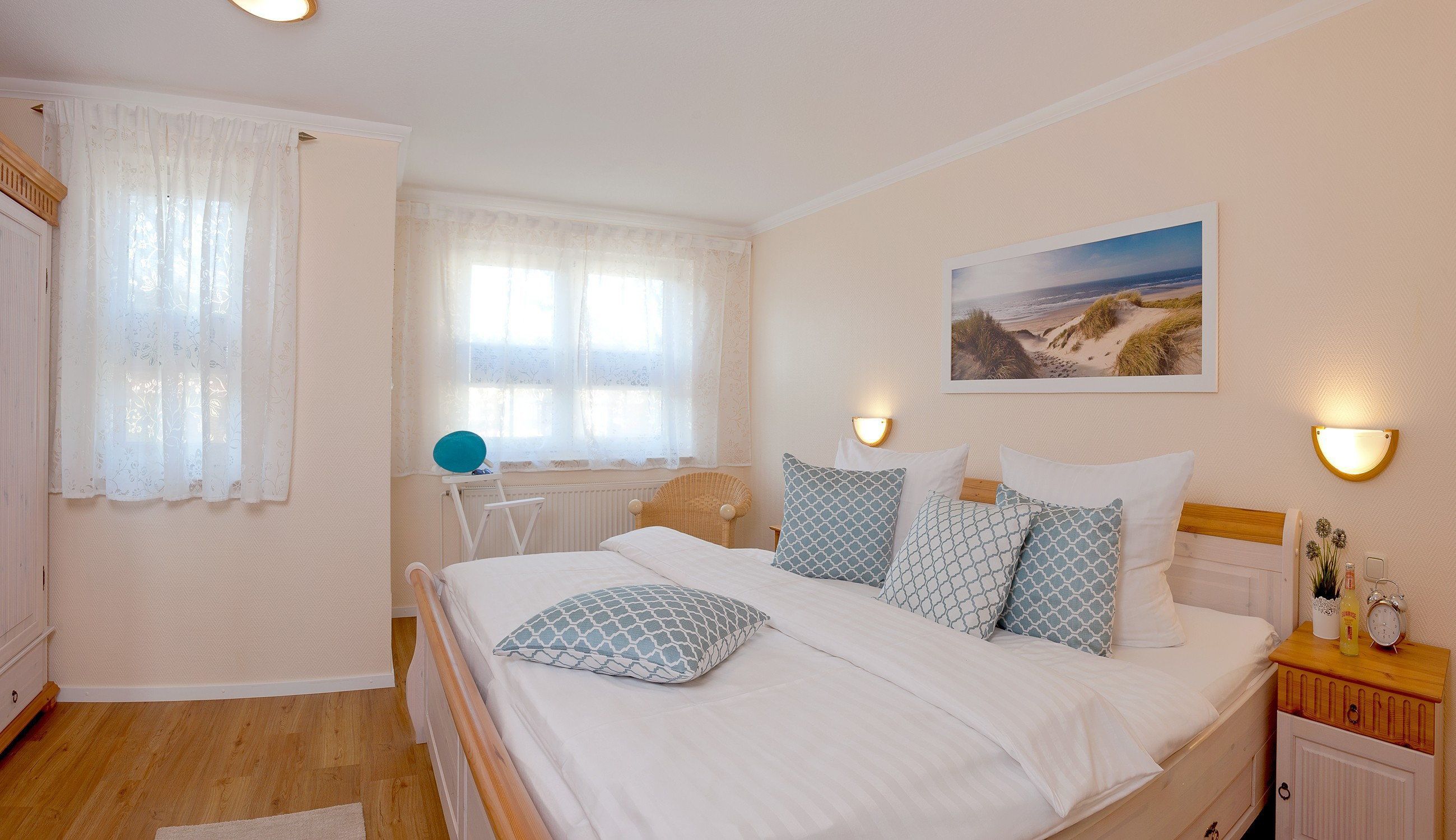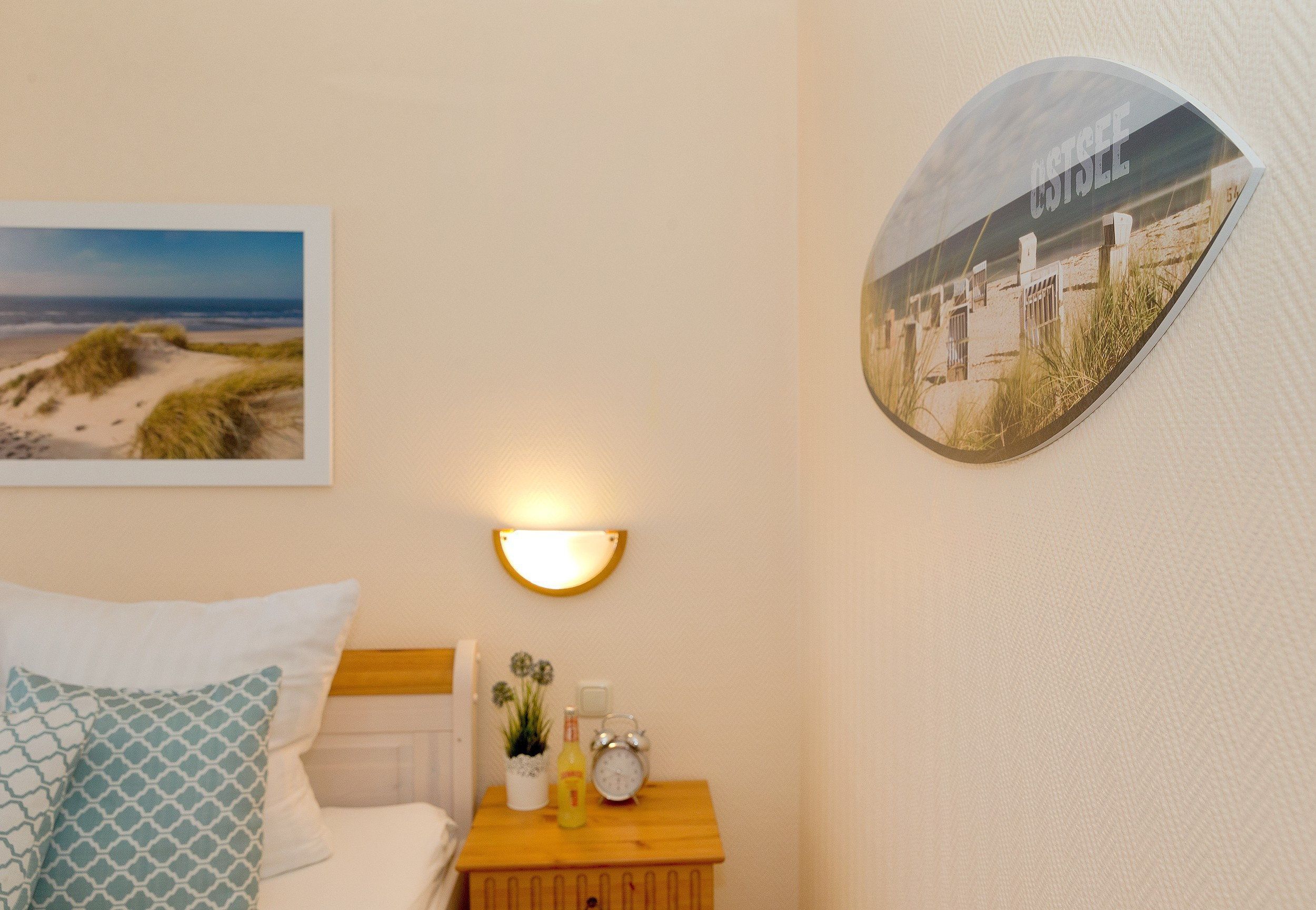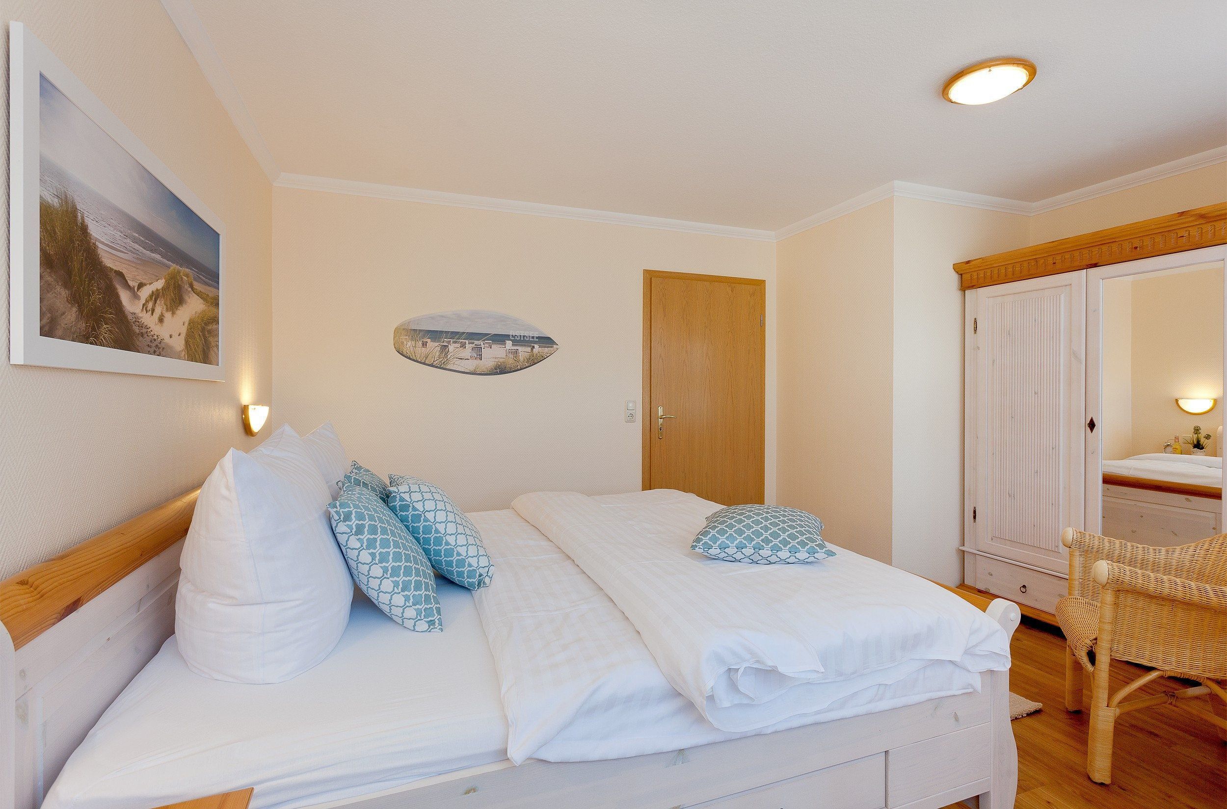 Auf dem angrenzenden Balkon können Sie sich für ein Sonnenbad oder einem gemütlichen Abend an der Ostseeluft zurückziehen. Im Schlafzimmer erwartet Sie ein bequemes Doppelbett (180 x 200cm / zwei getrennte Matratzen), beginnen Sie einen neuen Urlaubstag frisch ausgeschlafen und gut erholt.