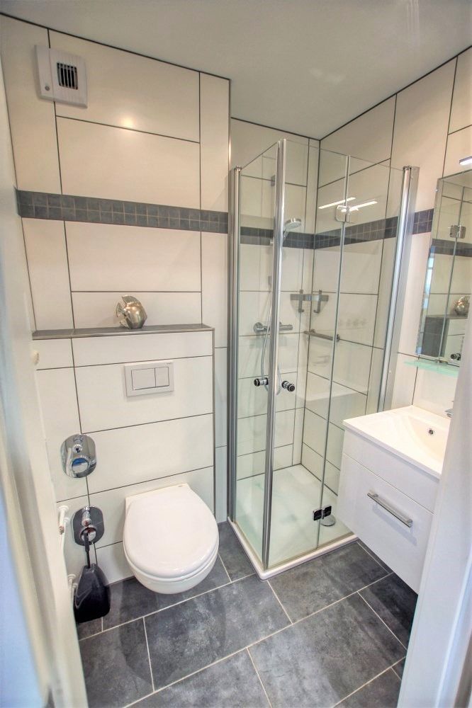 Bad mit WC, Duschkabine und niedrigem Duscheinstieg