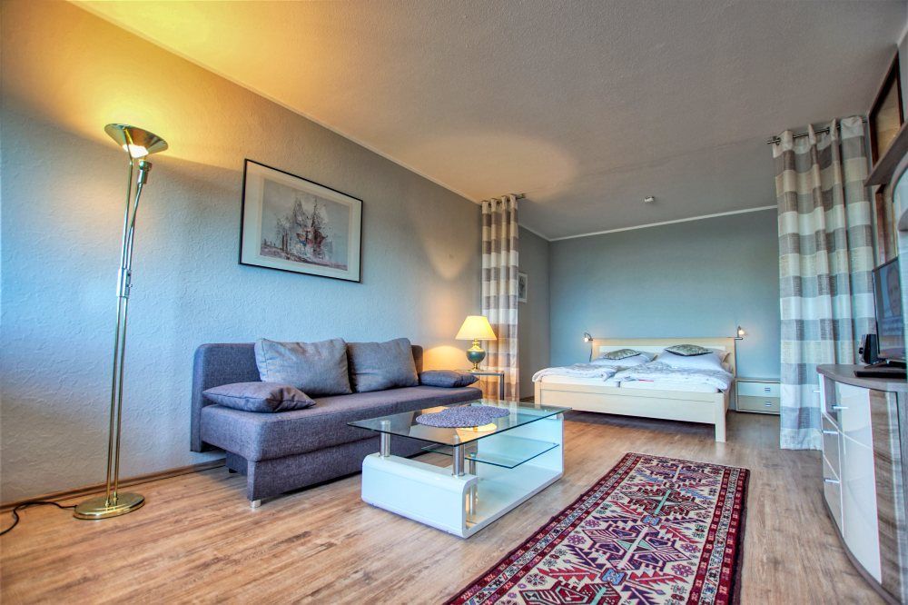 Die Ferienwohnung befindet sich im Haus D des Ferienparks und liegt in der 6. Etage mit einem Balkon zur Nordseite, der einen herrlichen Blick auf die Ostsee bietet.