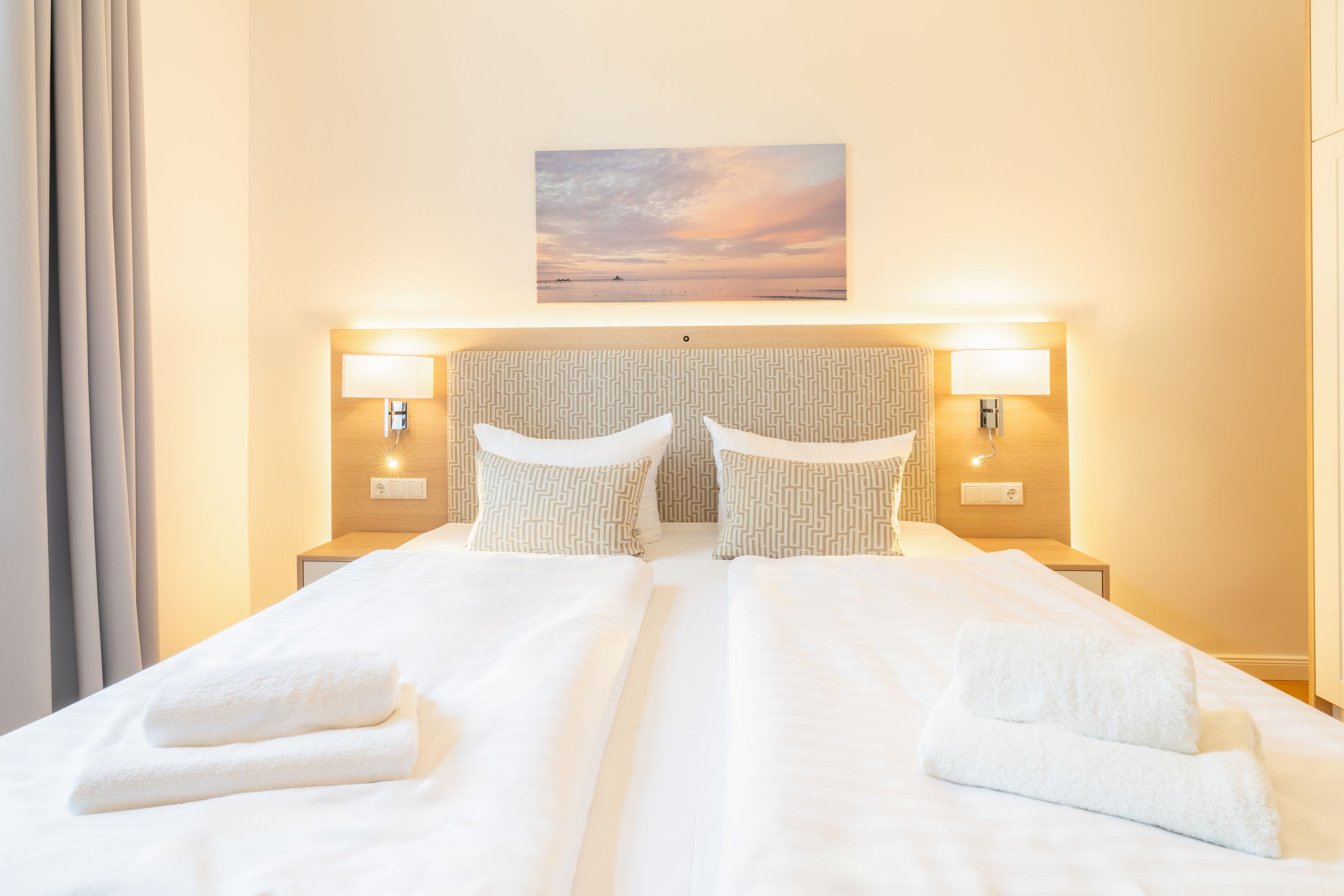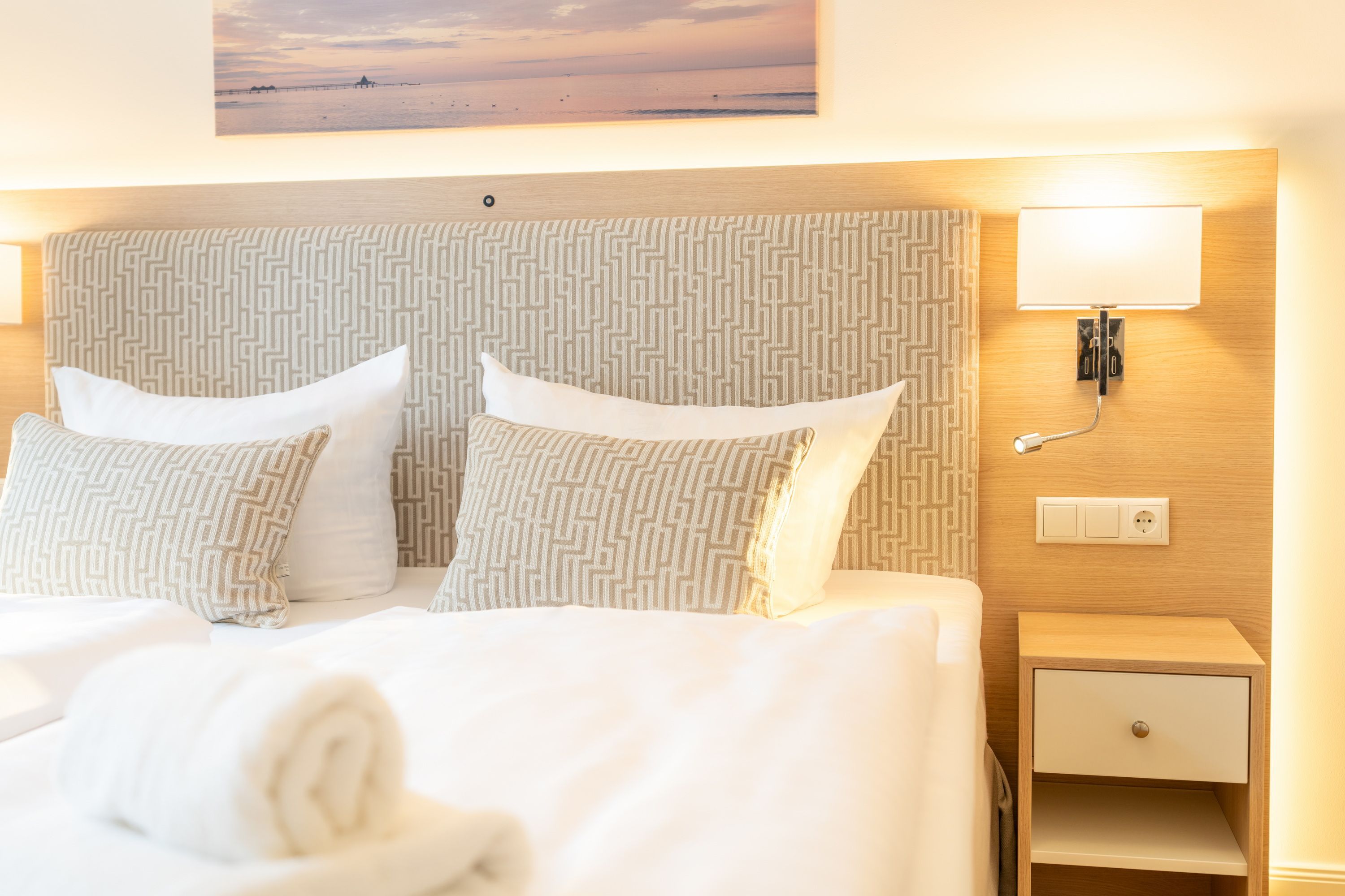 Damit Sie Ihre wohlverdiente Urlaubszeit bereits am Anreisetag in vollen Zügen genießen können, haben wir das Bett für Sie und das für Ihre lieben Mitreisenden bereits bezogen und ein Duschtuch sowie ein kleines Handtuch bereitgelegt.