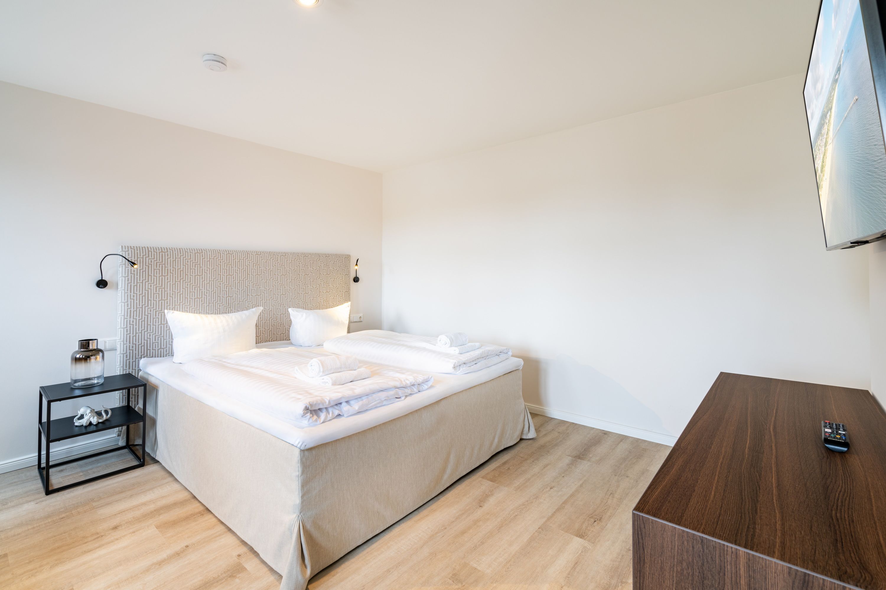 Damit Sie Ihre wohlverdiente Urlaubszeit bereits am Anreisetag in vollen Zügen genießen können, haben wir das Bett für Sie und das für Ihre lieben Mitreisenden bereits bezogen und ein Duschtuch sowie ein kleines Handtuch bereitgelegt. Auf dem Grundstück steht Ihnen ein gemeinschaftlich genutzter Außen- und Sitzbereich mit Gartenmöbeln und Strandkörben mit zur Verfügung.