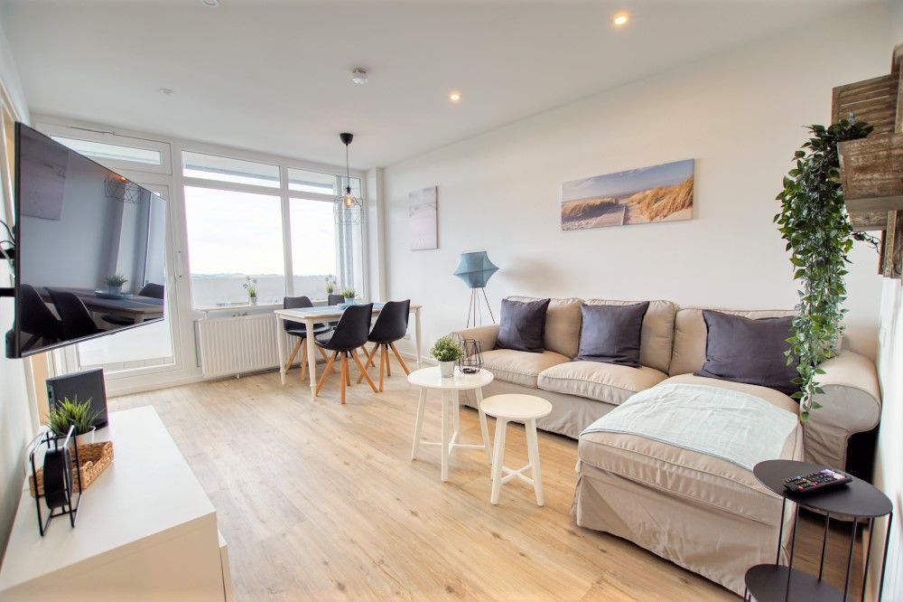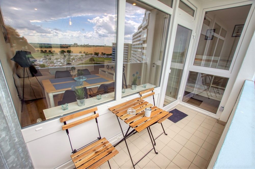 Im Wohngebäudekomplex Ferienpark im 7. Stockwerk des Haus D, in Süd-West Lage, finden Sie diese schick eingerichtete 45m² Ferienwohnung mit wunderbarer Aussicht auf die Ostsee und Felder/Wiesen.