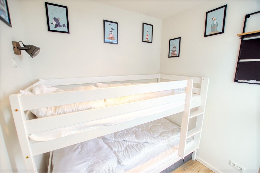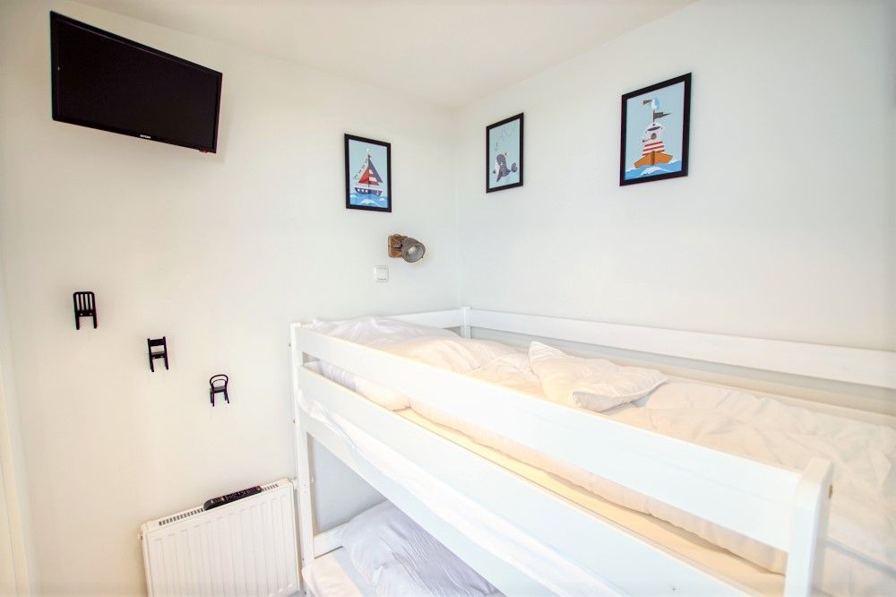 Das Kinderzimmer wurde mit einem Hochbett ausgestattet, auf dem zwei Personen schlafen können , sodass eine Belegung des Appartements mit bis zu 4 Personen möglich ist. Dazu befindet sich ein Fernseher und ein weiterer Heizkörper im Kinderzimmer.