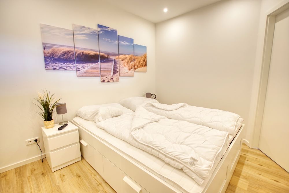 Diese im Jahr 2021 komplett sanierte Wohnung liegt im Haus D Ferienpark, in der 7. Etage, mit Balkon zur Westseite, der einen herrlichen Blick auf die Ostsee bietet. Die Wohnungsgröße beträgt 45m², mit architektonisch geplanter Aufteilung: Küche im Eingangsbereich, separater Elternschlafbereich mit Doppelbett (180x200cm) und TV, offener Wohnbereich mit großzügigem Flachbildfernseher. Kinderzimmer mit Etagenbett.