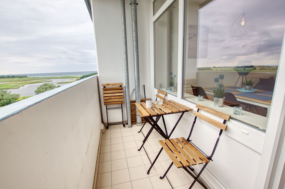 Besonderes Highlight Ihrer Ferienwohnung ist der Balkon mit wunderbarer Aussicht sowie Sonnenuntergang und der optimierte Grundriss mit vergrößerter Küche.