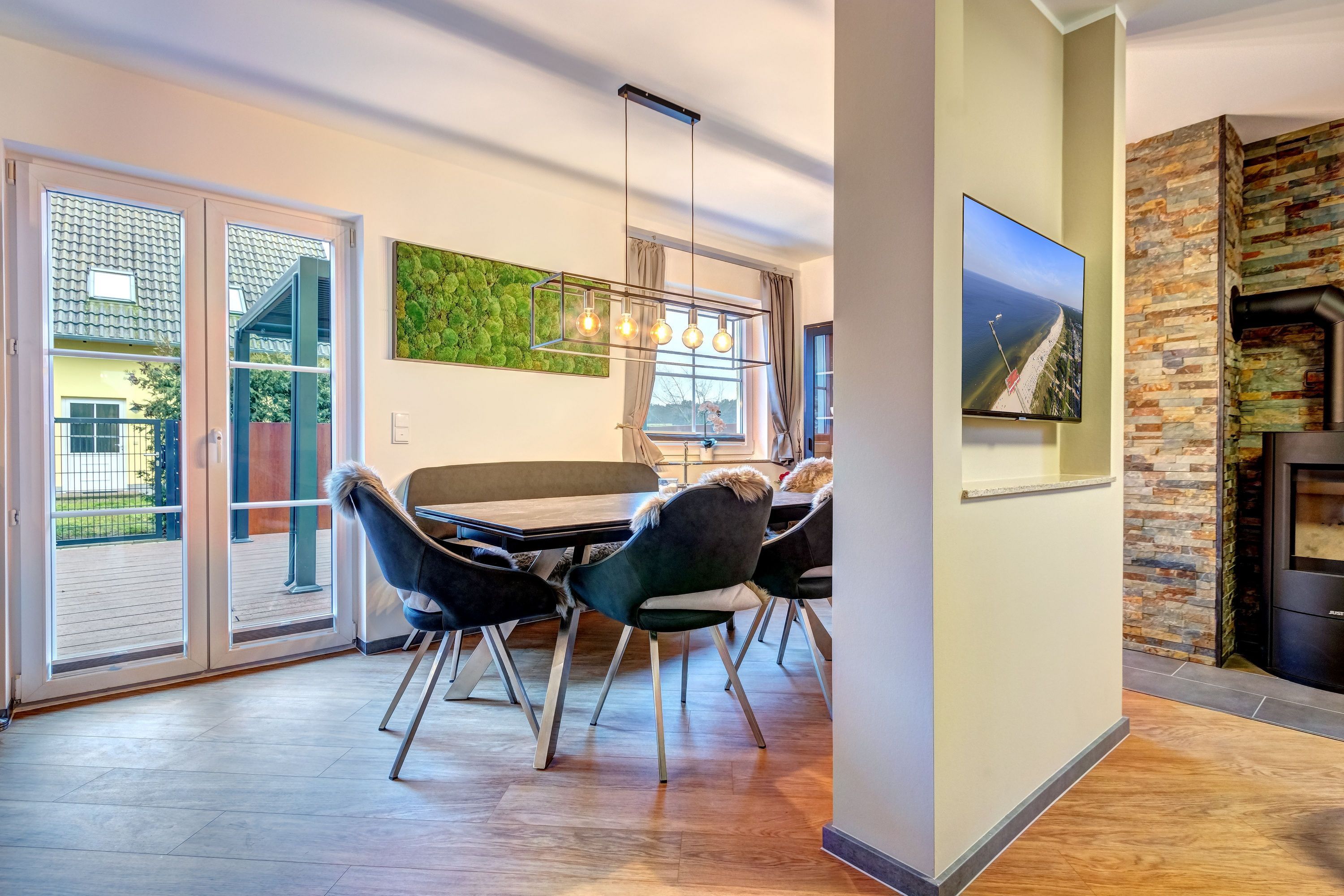 Auf einer Wohnfläche von 85 qm mit 4 Zimmern, Küche, 2 Bädern und einer Sauna können Sie nun hervorragend vom Alltagsstress erholen. Dieses Nichtraucher-Ferienhaus in Korswandt eignet sich für bis zu 6 Personen und bietet Ihnen kostenfreies WLAN und Saunanutzung inklusive. Durch den Wohnbereich mit Esstisch für 6 Personen (ausziehbar zu einer Tafel auf 2,20 m), Kamin (inkl. Brennholz auf der Terrasse) und gemütlicher Couch mit elektromotorischer Relaxfunktion kommen Sie direkt auf die großzügig gestaltete, möblierte Terrasse mit Sichtschutz auf 40 qm. Hier wartet auch bereits ein hochwertiger Strandkorb auf gemütliche Sternenstunden auf Sie. Abgerundet wird der gemütliche Außenbereich durch einen Dimario Edelstahlgrill mit Grillrost Wok, Topf und Ablagetablett (Brennholz liegt bereits auf der Terrasse für Sie bereit). Die voll ausgestattete Küche bietet Ihnen alle Annehmlichkeiten vom Geschirrspüler über eine Kaffeemaschine bis hin zum Kühlschrank mit einem Gefrierfach. Alle Küchengeräte vom Toaster bis hin zum Wasserkocher, sowie das Besteck sind von WMF aus Edelstahl gefertigt.