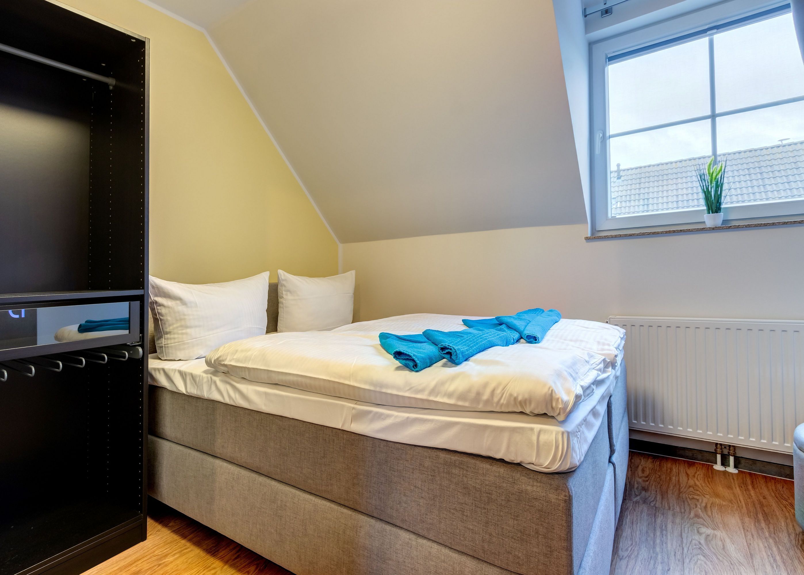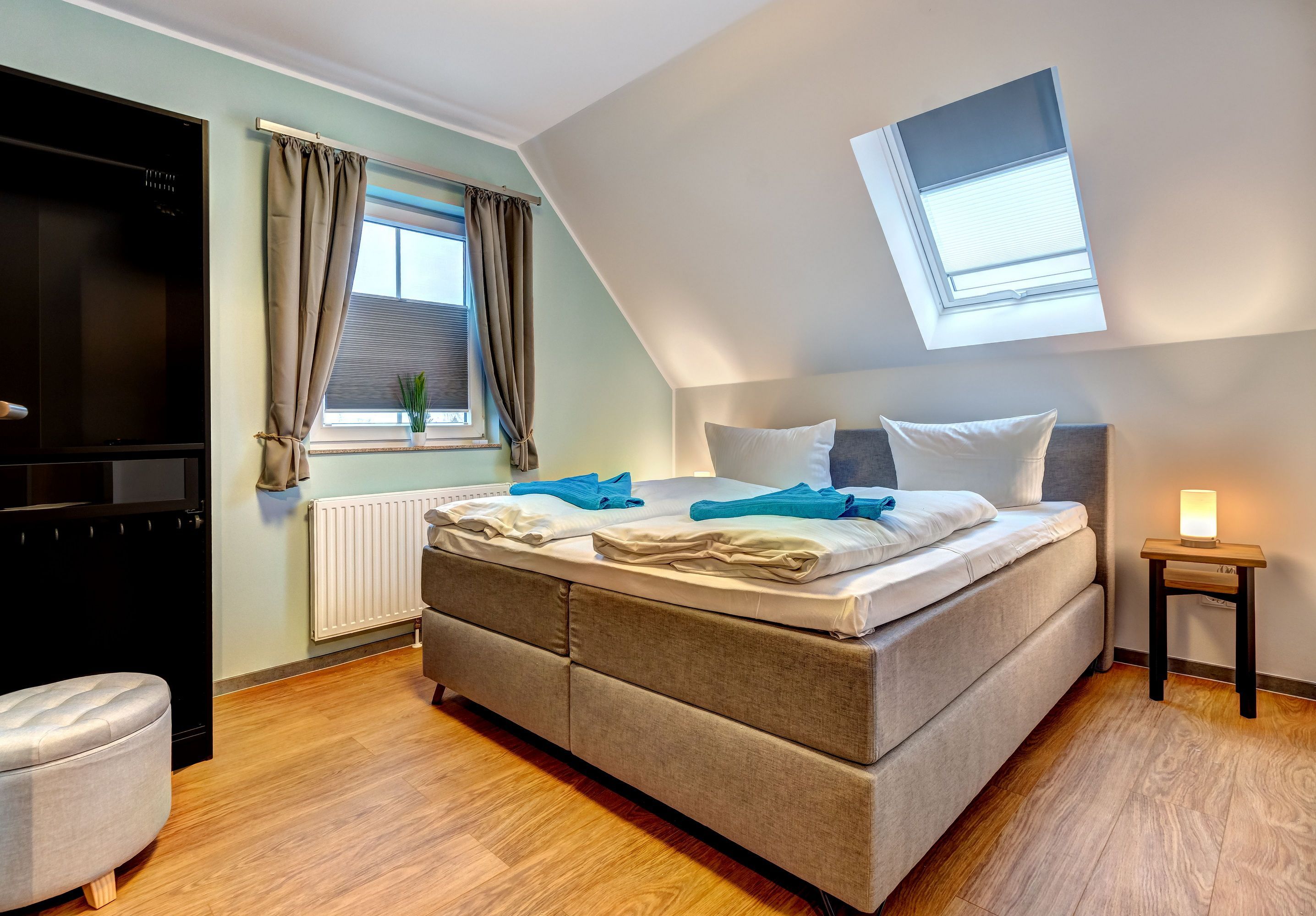Im Obergeschoss finden Sie 3 Schlafzimmer vor, die mit hochwertigen Boxspringbetten (2 Betten a 180x200cm; 1 Bett 140x200cm), Fernseher und Kleiderschränke möbliert sind. Alle Fenster des Hauses sind mit Insektenschutzgitter und Verdunklungsmöglichkeiten ausgestattet.
