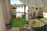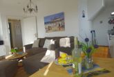 Im Wohnbereich erwarten Sie eine bequeme Couch mit Schlaffunktion, ein Flat-TV sowie ein Esstisch für drei Personen. Von hier aus gelangen Sie auf den sonnigen Balkon in Süd-West-Ausrichtung perfekt, um den Tag bei einem Glas Wein gemütlich ausklingen zu lassen.
