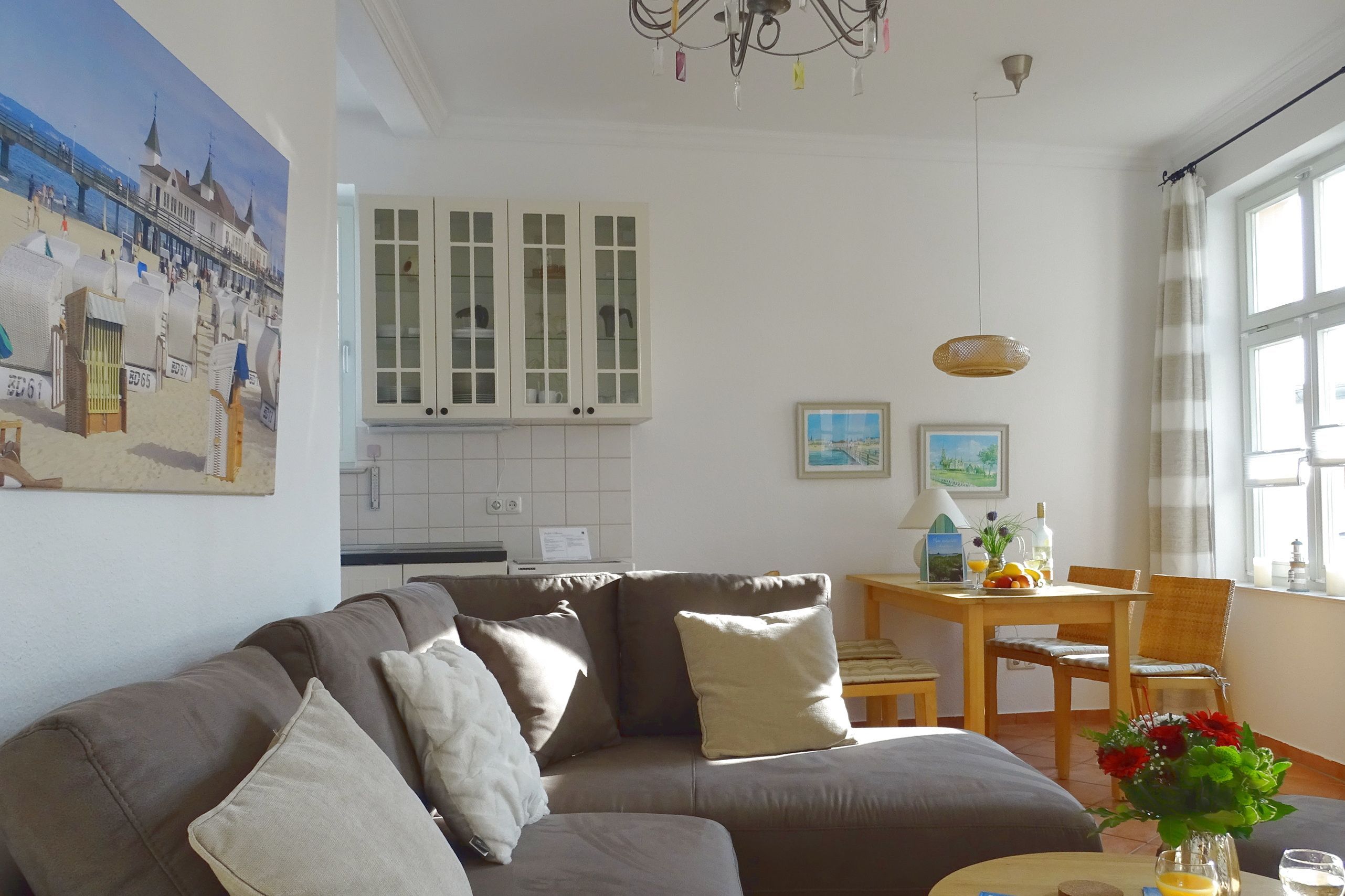 Zahlreiche stimmungsvolle Bilder von Ahlbeck, die in allen Räumen verteilt sind, setzen charmante Akzente und geben jedem Zimmer einen besonderen, regionalen Charakter.